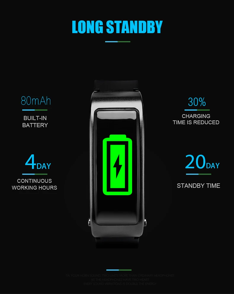 6. Long Battery Life: The Intelligent Bracelet with Bluetooth Earphone boasts a long-lasting battery that can support up to 7-15 days of standby time, depending on usage. This means you can enjoy uninterrupted use without frequent recharging.