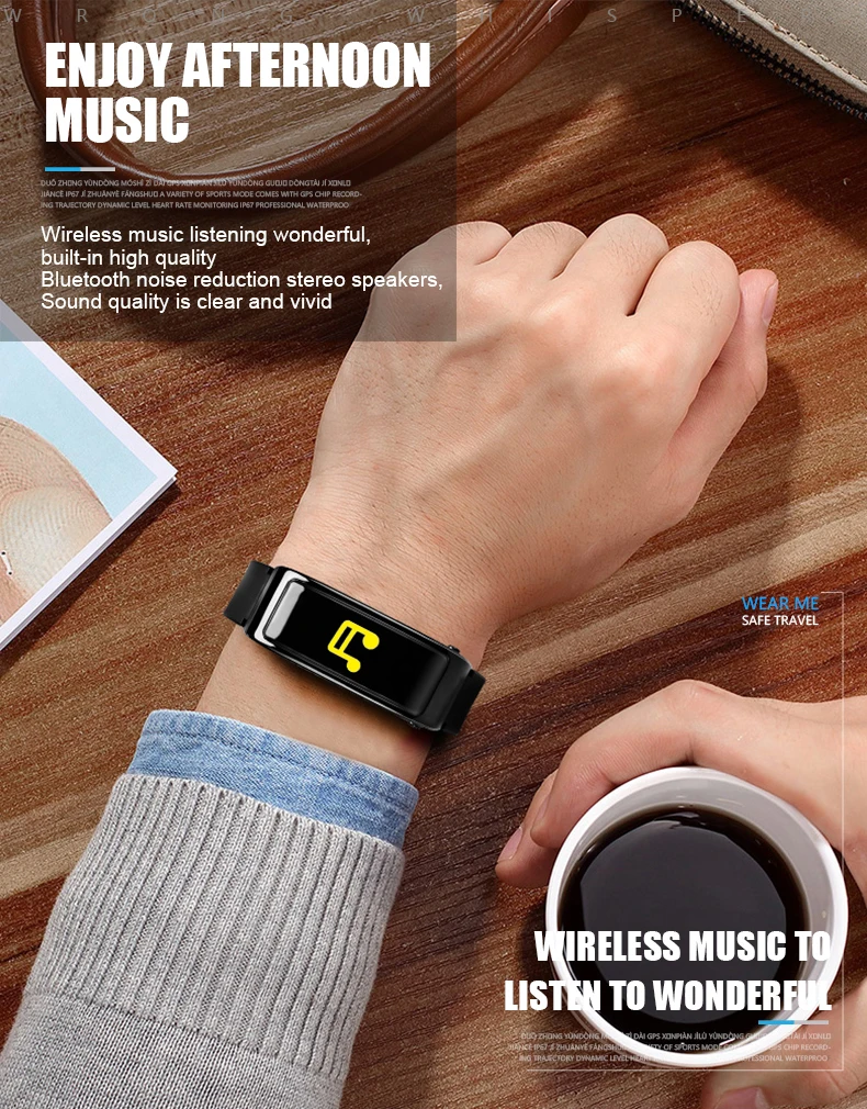 With our smart bracelet, no need to worry about that anymore as we combined it with a smart bracelet and Bluetooth earphones!