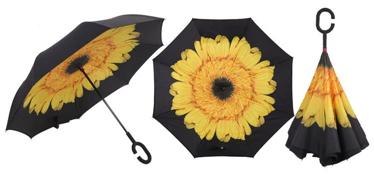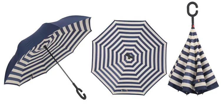 It adds a nice twist to our classic umbrella by turning inside-out when you’re not using it.