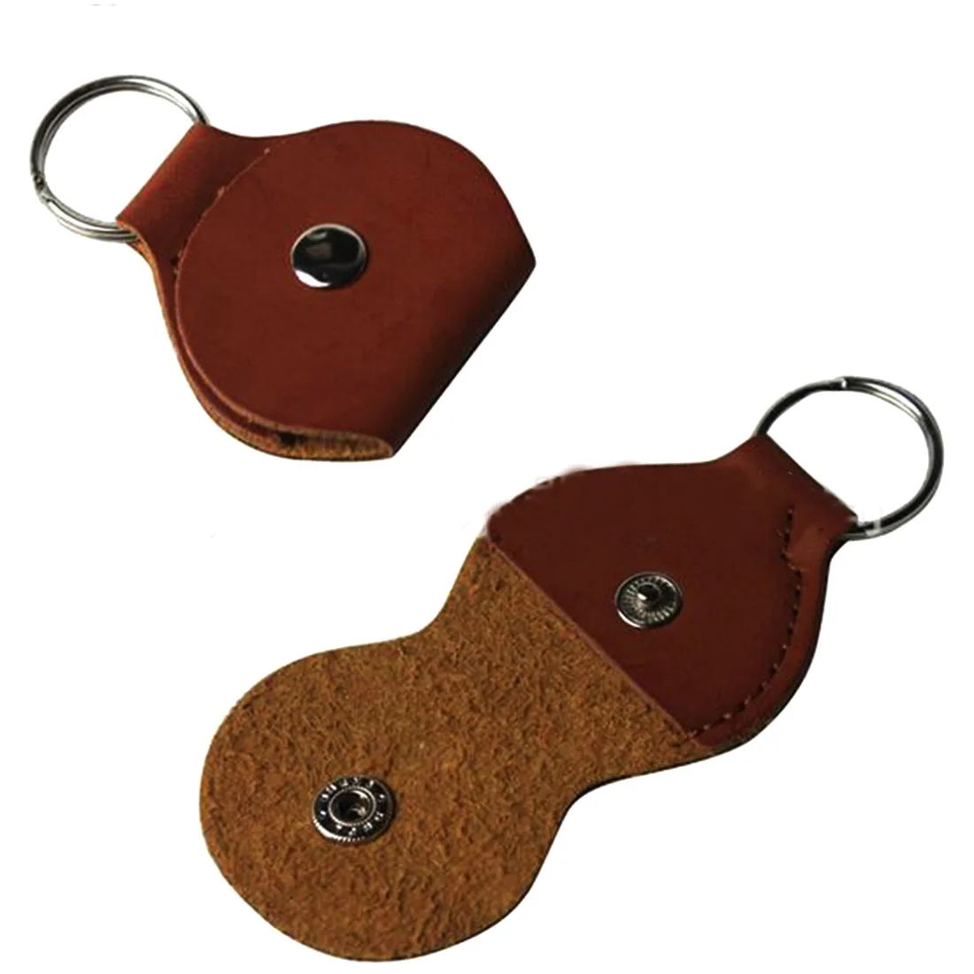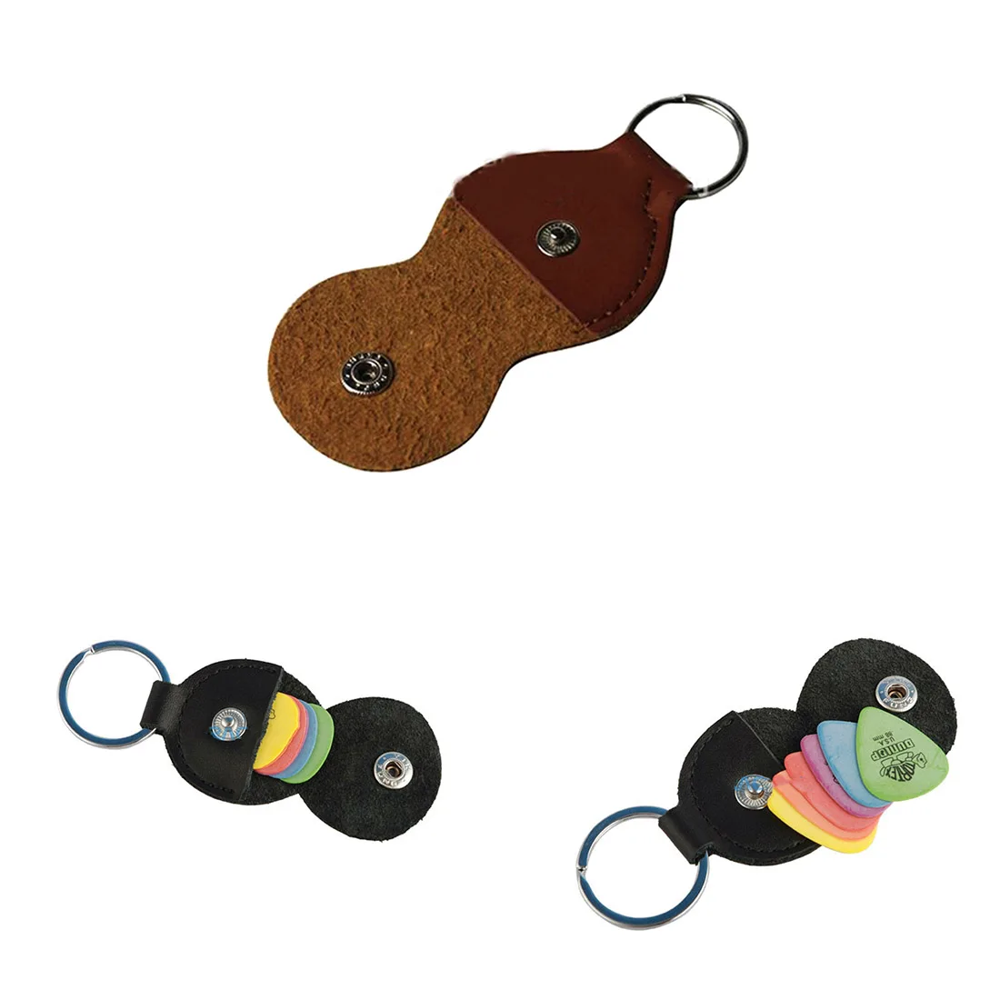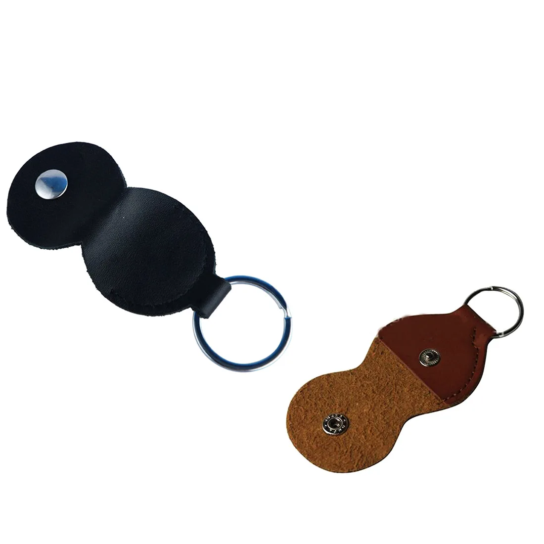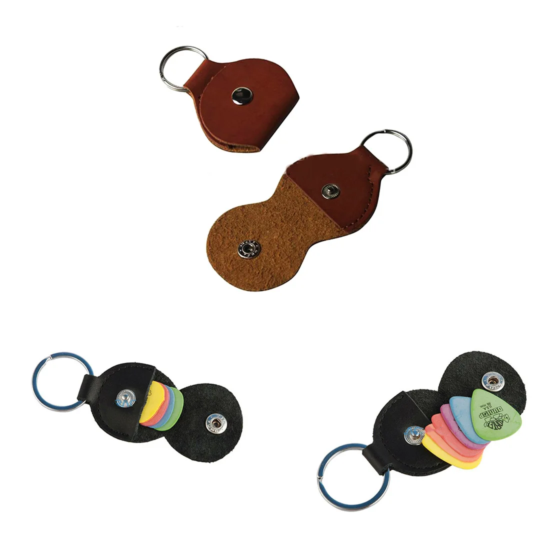 This Keyring Pick Holder is revolutionary! It safely holds your guitar picks in an easy to find, easy to access place. Never lose your picks again, with up to 12 picks per holder! Made from genuine black leather.