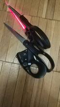 sharp scissors, bright laser light which is also visible in daylight. thank you very much seller!