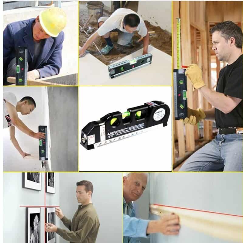 A good home improvement tool that combines a fine-tuned tape measure, a triple- positioned level, bubble light and a laser beam into one to provide maximum and accurate results.