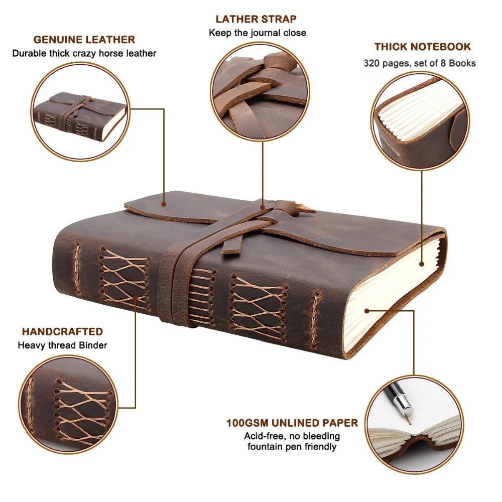 Leather journal travel notebook offers a connection between your mind and your written words, it is a great way to get out your thoughts or feelings onto paper. A leather journal notebook becomes more than just a blank book – it becomes an extension of yourself, a tool to help capture the thoughts and moments that make up your days.