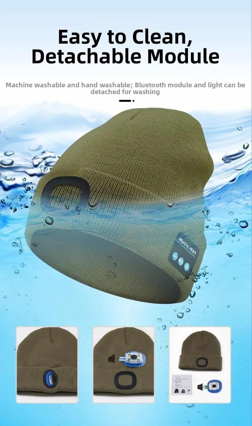 Both the LED module and Bluetooth components are fully removable, making the beanie easy to wash and maintain.