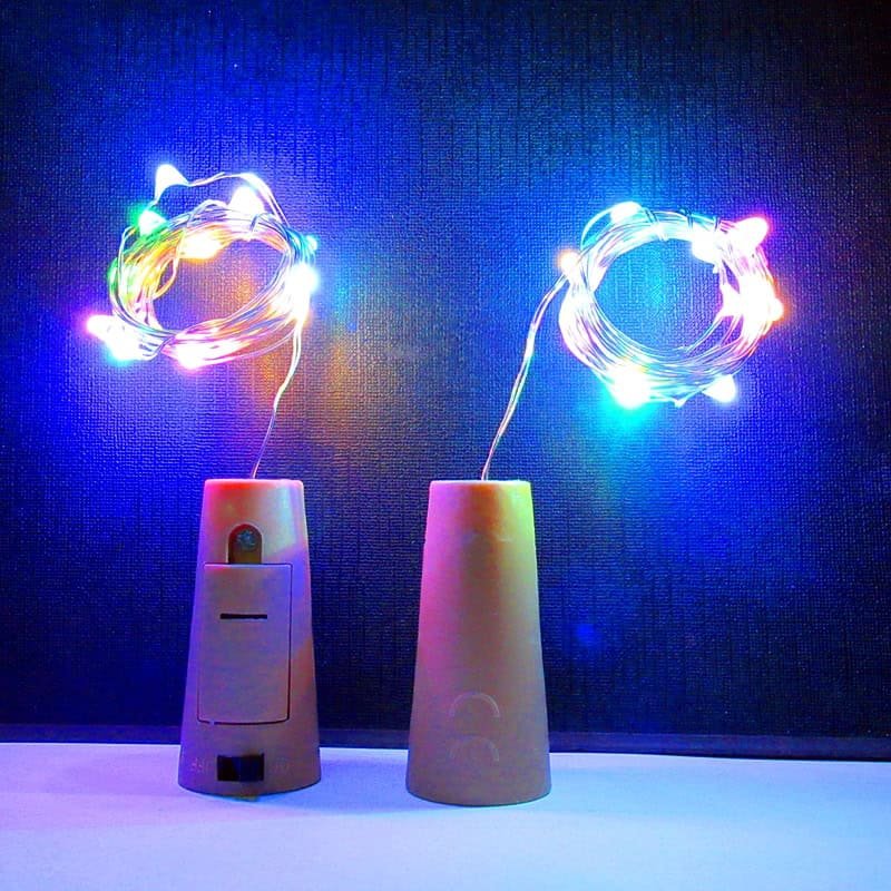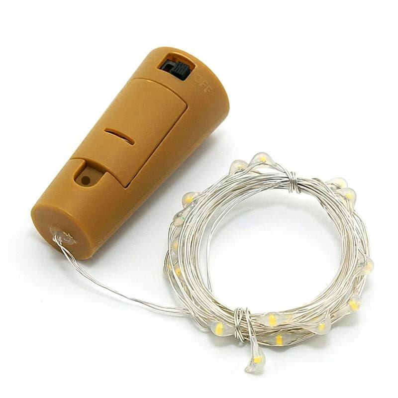 These lights come on a long string attached to a cork. Simply insert the lights into an empty bottle and the cork keeps them all in place! Try using the lights with different coloured bottles for different effects.