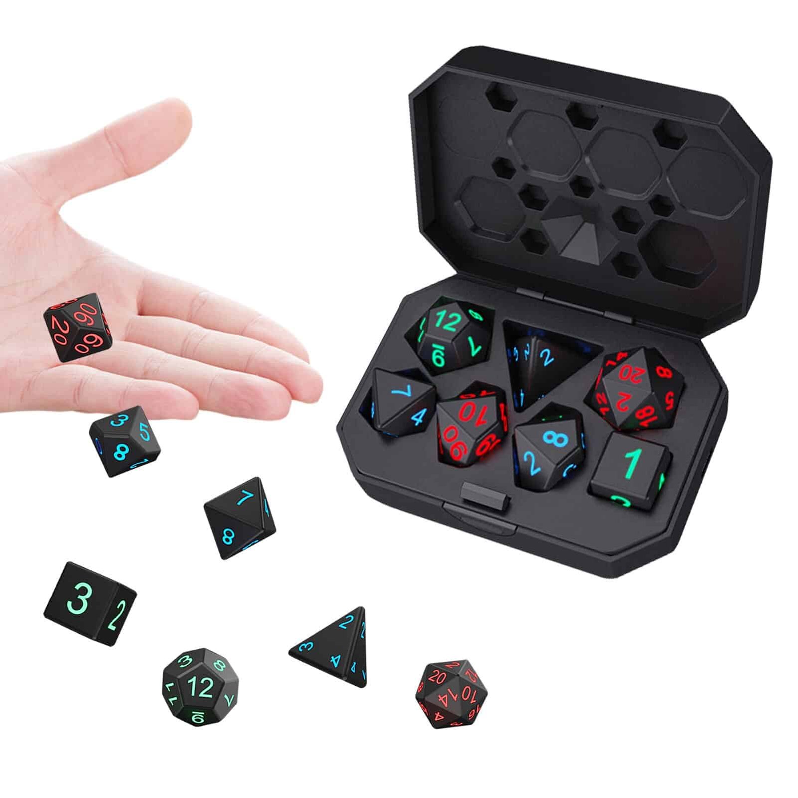 Do you usually play games with your friends and share a good time? Introducing to you our LED dice set, very suitable for playing Dungeons & Dragons, D&D, Magic Party, Pathfinder, Sci-Fi, Yu-Gi-Oh, RPG, and other games with friends. The polyhedral game dice set come with color-changing flashing LED beads, which can be seen differently from the same viewing angle. Simply shake the DND dice to light them up and they will flash fantastically and attractively. This set is made of plastic, not easily deformed, and can be used for a long time. In addition, light-up dice with a charging case, and a USB port for charging for multiple uses. The power case is very convenient for storing the game dice set to avoid missing any of them, suitable for games or as a gift. Buy now!