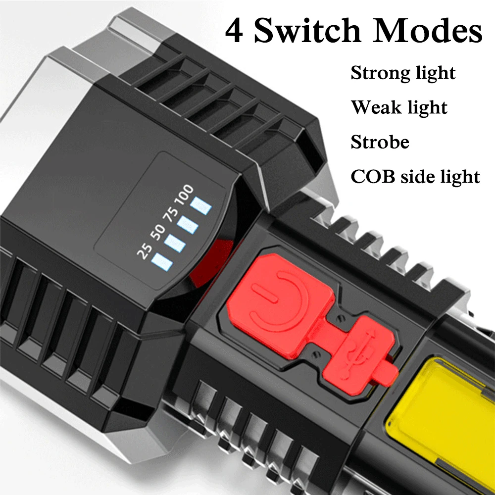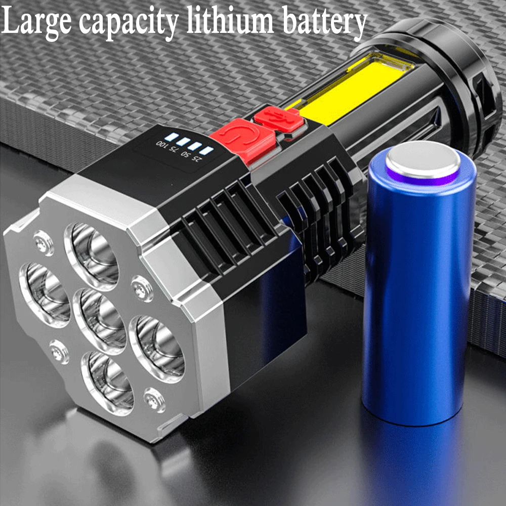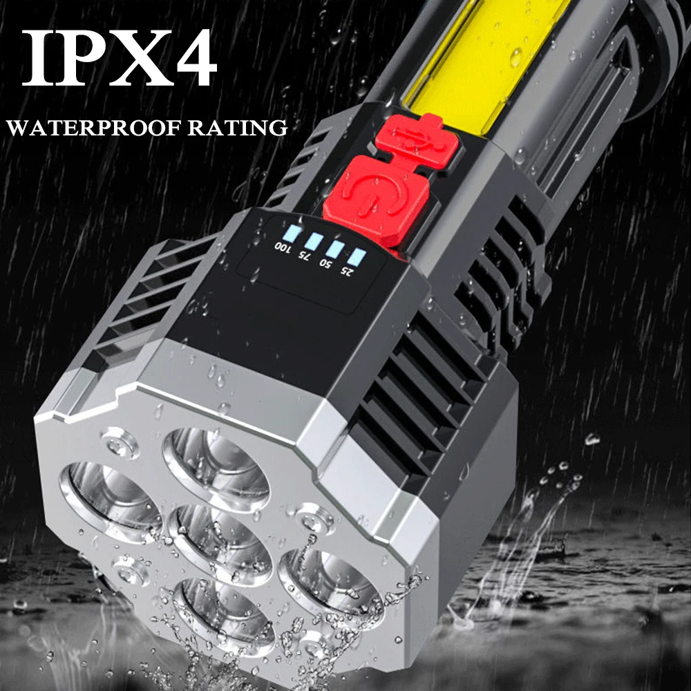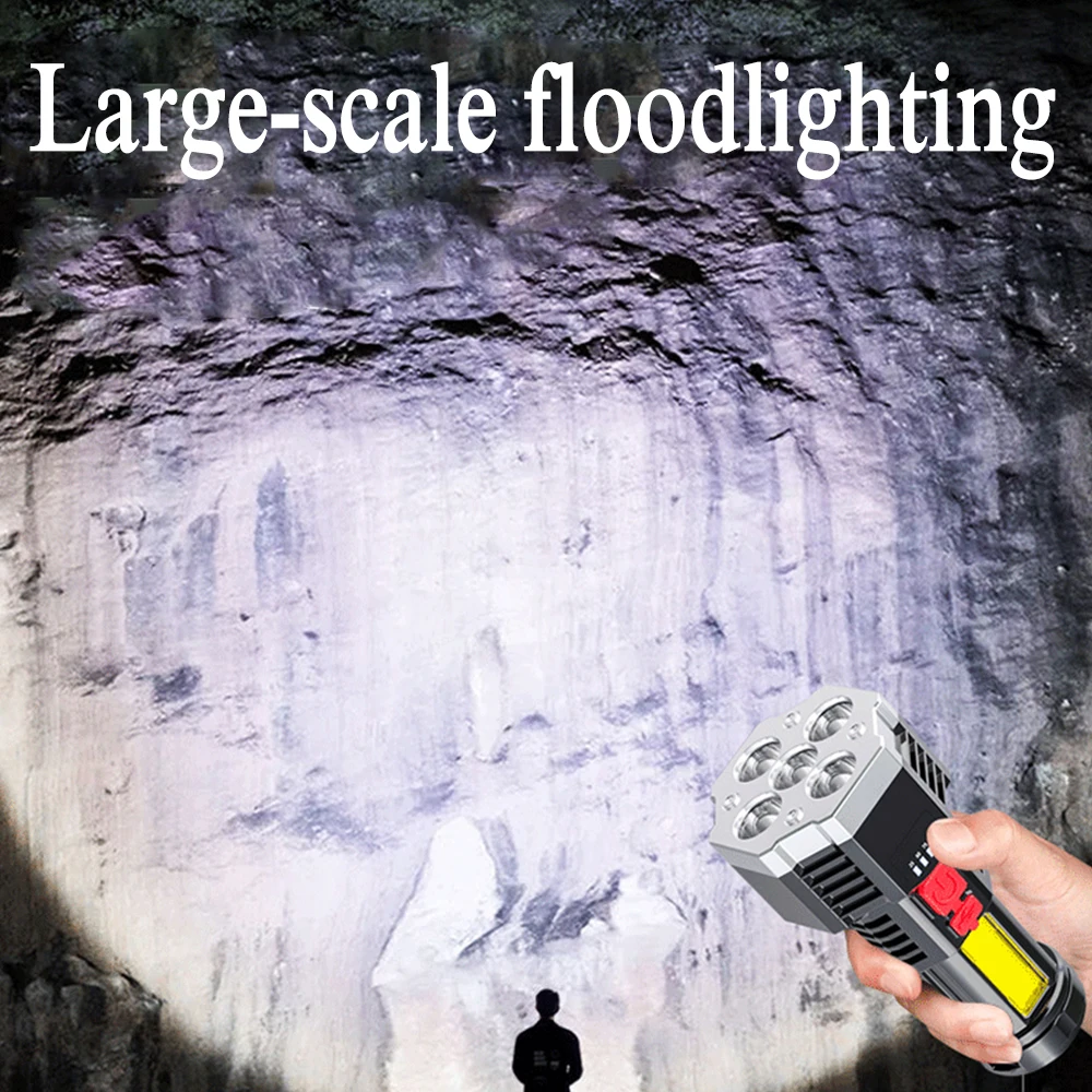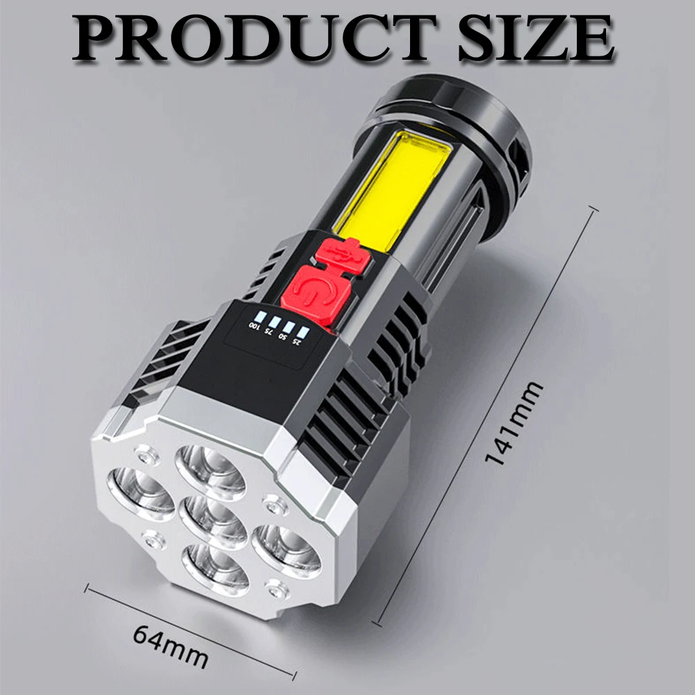 Are you looking for a convenient flashlight to illuminate at night? Our 5 LED flashlight is exactly what you need. It is bright enough for families and professionals to use as well as outdoor activities, such as hiking, camping, dog walking, running, hunting, fishing, etc. This 5 LED flashlight is made of ABS plastic, waterproof, sturdy, and durable. Built-in 1200mAh battery, USB rechargeable, 4 levels light source can be adjusted and display battery remaining. This product is portable and compact, easy to carry. Fits very well in your hand, and backpack. Don’t skip it! Buy now!
