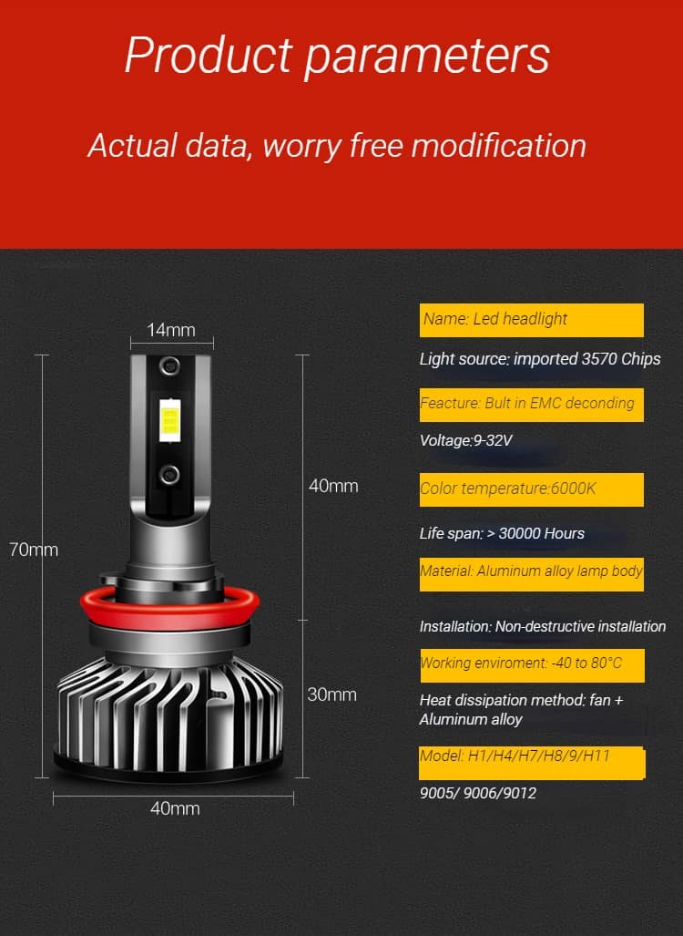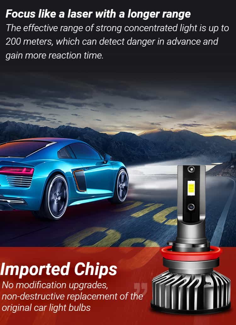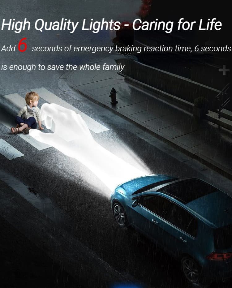 Seeing clearly when driving, especially at night, is arguably one of the most important factors for driving safely! So, our product LED headlight kit will help you solve that problem. This LED fog light body is made of aerospace aluminum with a hollow spiral pattern heat dissipation design to meet the minimum heat transfer requirements. Next, headlight bulbs have an IP68 waterproof rating, which can protect your bulbs from burning out even on rainy days again. Super focus beam mode allows you to not significantly reduce road visibility even in bad weather, giving you more confidence and your family more peace of mind. Moreover, pure white light provides a wider and farther field of view allowing you to see farther and clearer, without fear of dim yellow street lights, ensuring the safety of both drivers. Buy it now!