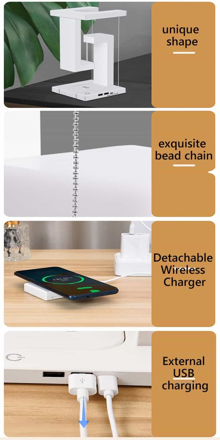 The Levitating Lamp is a stunning and innovative lighting device that combines the magic of anti-gravity with the convenience of wireless charging. This lamp features a sleek and minimalist design that will elevate your home or office decor.