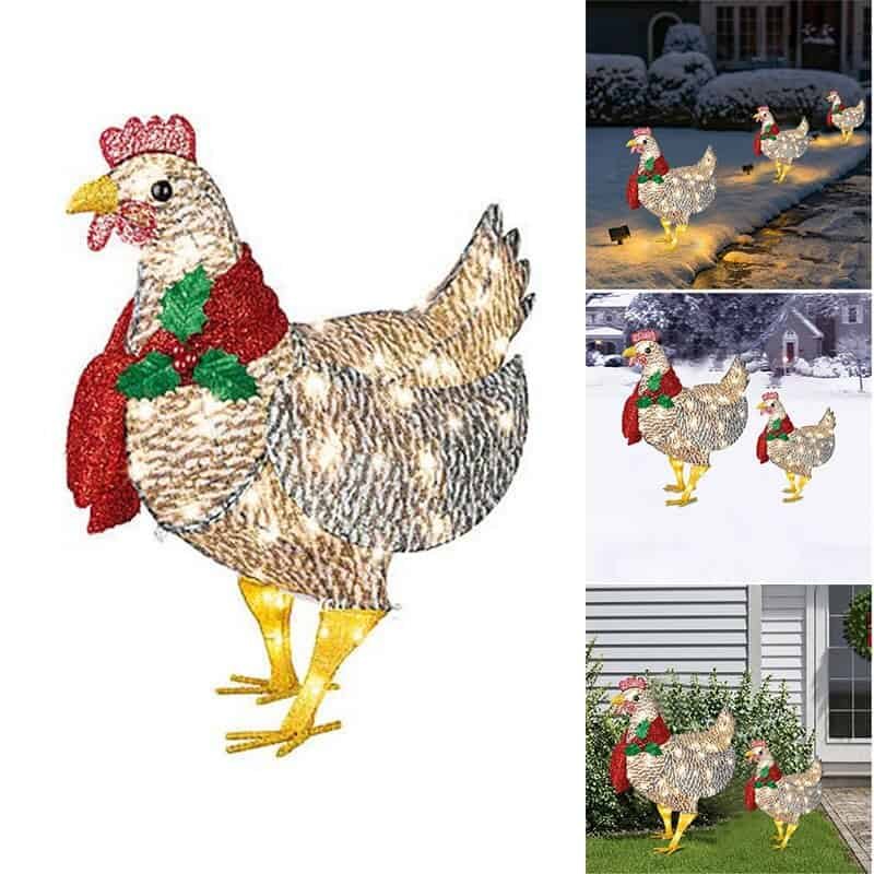 Get in the spirit of giving with this Light up chicken. Don’t worry about leaving your chicken in the cold, this outdoor decoration is built for weeks outside in winter weather. The Light-up chicken with the scarf is made of strong high-quality metal, the delicate design uses different colors for the mouth, eyes, combs, legs, and body of the chicken, which can be distinguished more clearly, making this light chicken decoration look lifelike and very lifelike. Moreover, each rooster animal stake is made from acrylic, durable, weather-resistant, and waterproof. It can be placed indoors next to bookshelves, mantel shelves, tabletops, and outdoors next to gardens, lawns, rooftops, etc. What are you looking for? Buy now!