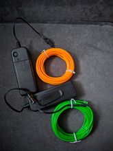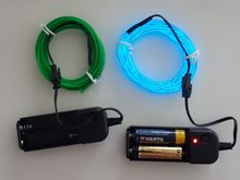 Wires give light from 2x batteries. I bought for the child for shooting video. Very satisfied. To stay on clothes you need to attach to the tape.
