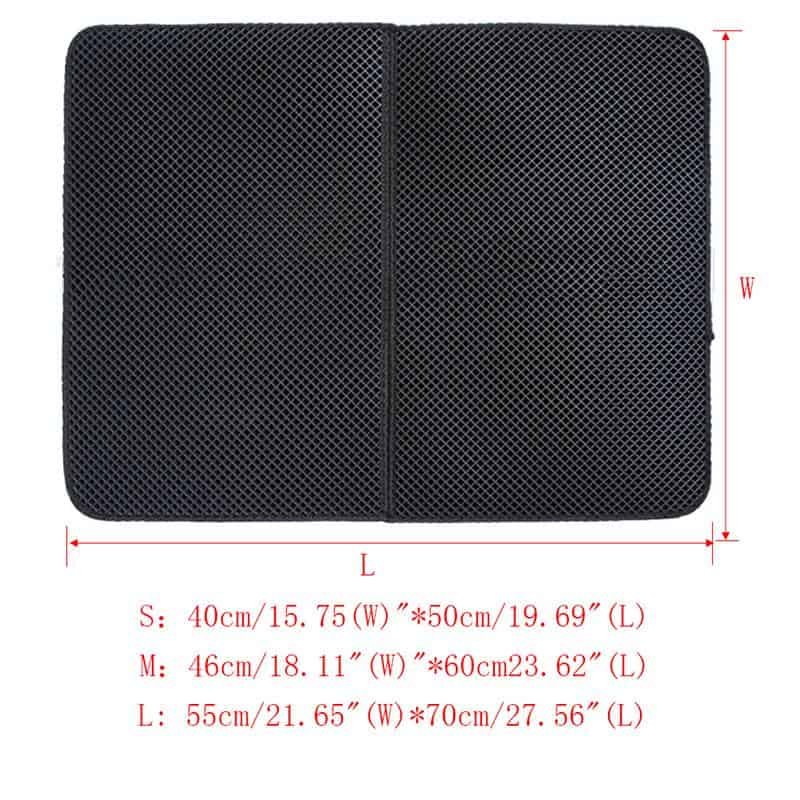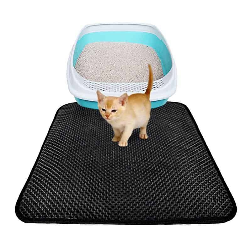 Introducing Litter Locker Cat Mat. The double-layer mat effectively catches litter from the cat’s paw through the honeycomb pockets. Which less mess, means less time spent cleaning. The material is urine-proof, waterproof, odor and stain-resistant. This mat will keep your cat and your house clean. It is also made of high-quality EVA foam rubber, which is non-toxic and eco-friendly.