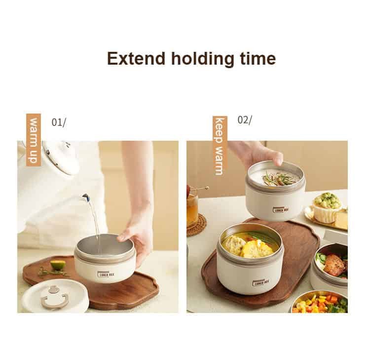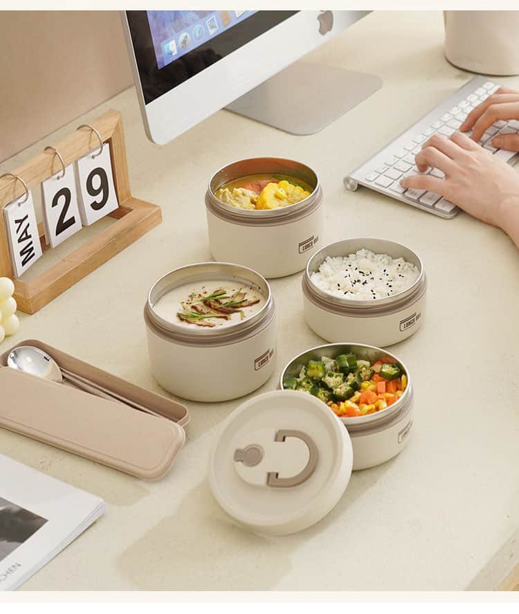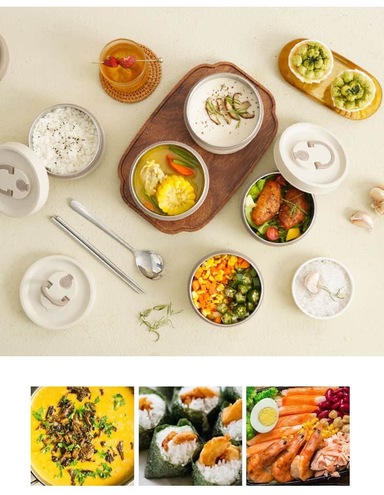 304 Stainless Steel: Both the container tank and utensils of the tiffin lunch box are made of 304 stainless steel with excellent corrosion and oxidation resistance. Easy to maintain.