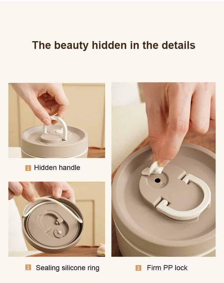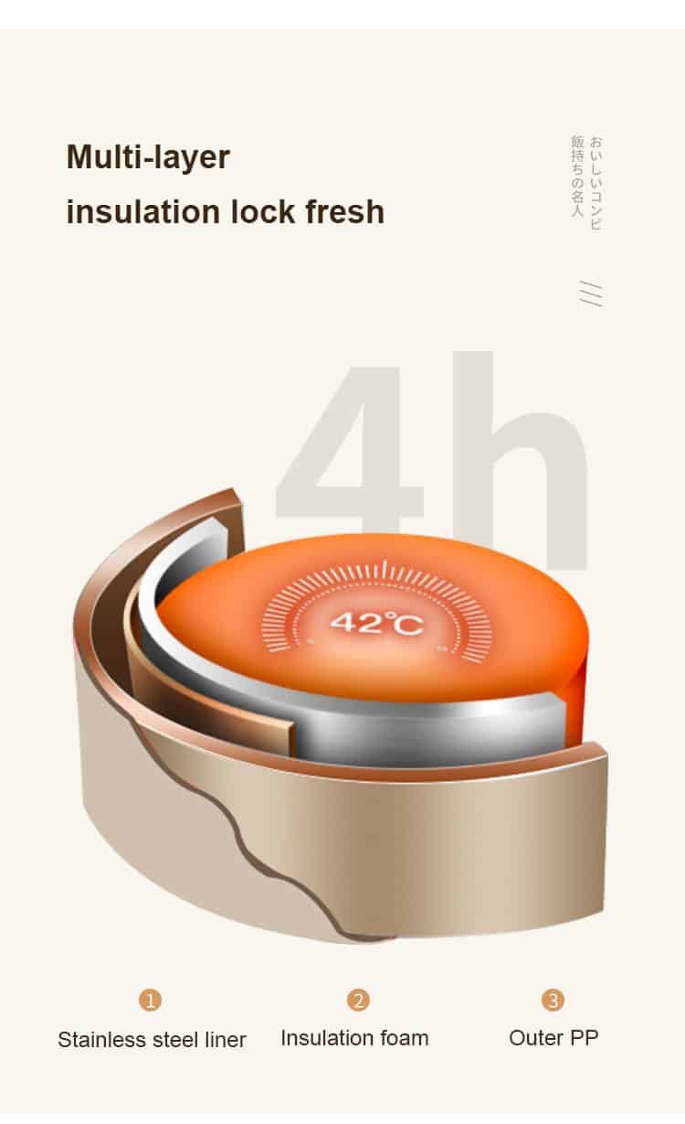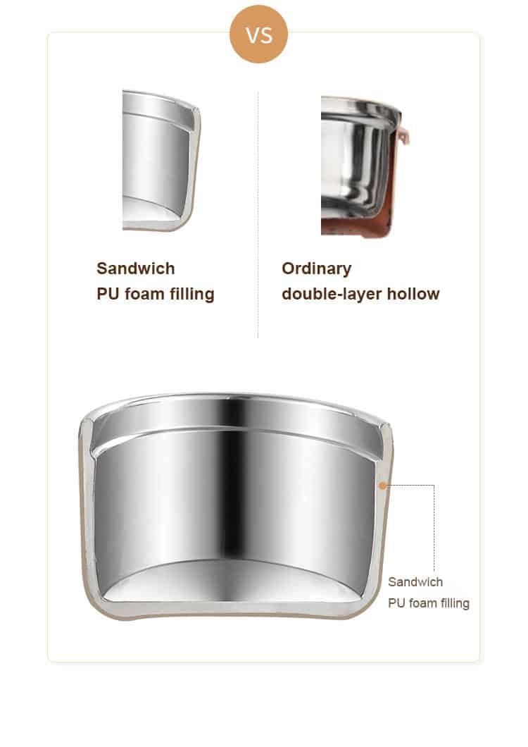 PU foam insulating layer: High-density insulated PU foam is applied to the middle layer, which makes food stay warmer than those with vacuum layer. At room temperature this food thermos will keep warm/cold for 3 hours.