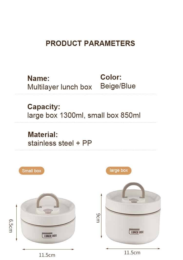 Capacity: large box 1300ml, small box 850ml