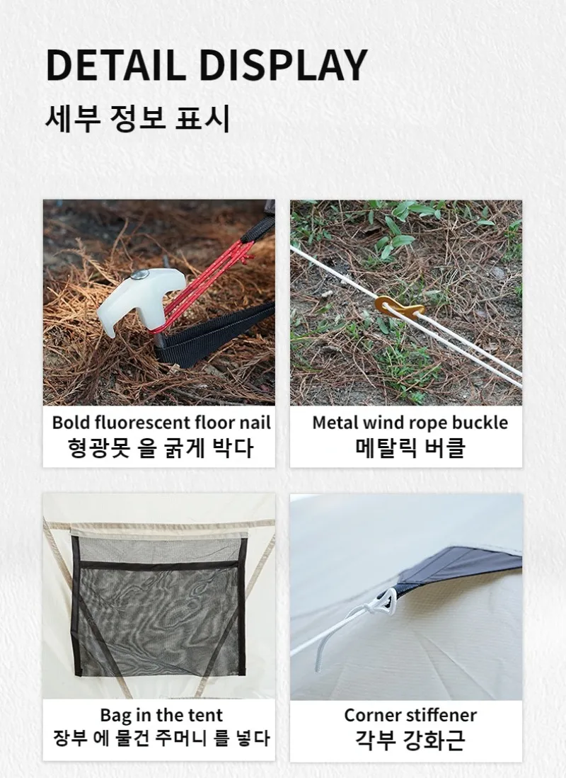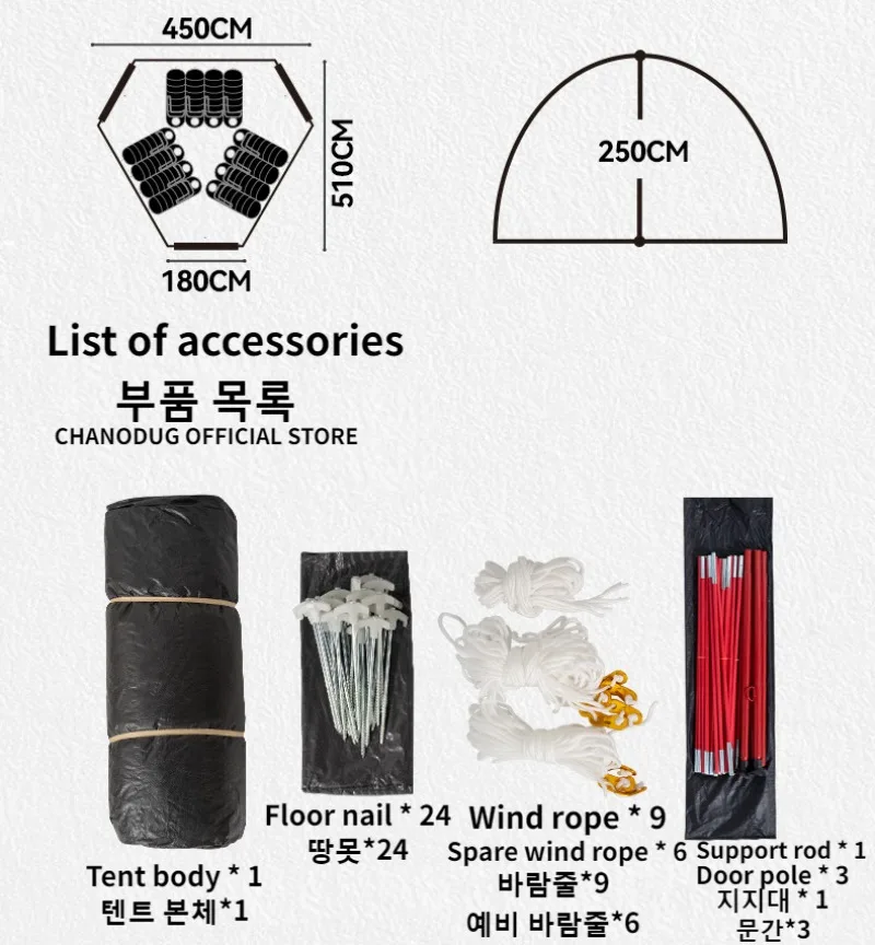 Accessories: Wind Rope * 9, Standby Wind Rope * 6, Ground Nail * 24