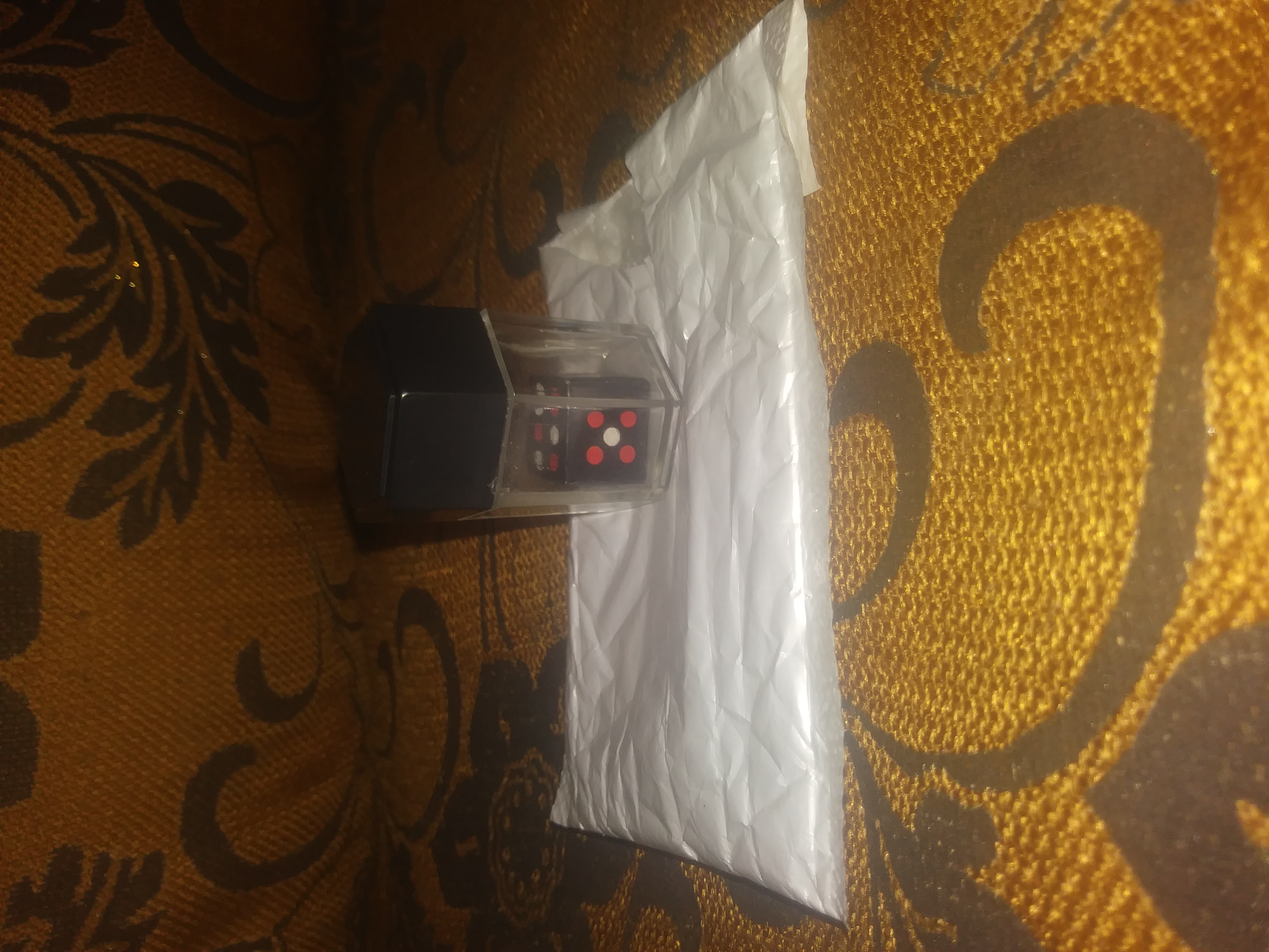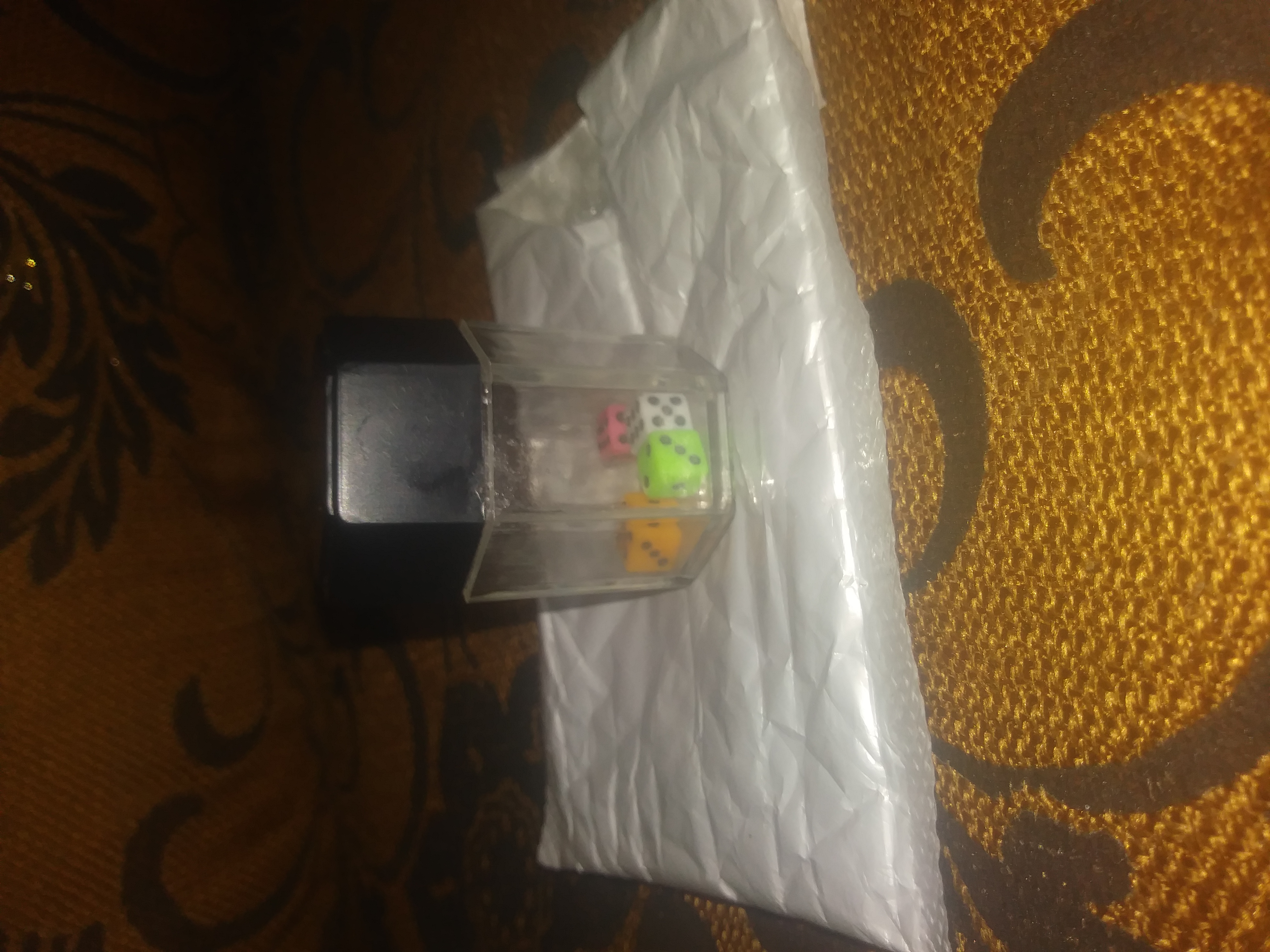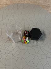PUT THE 8 SMALL DICE INTO THE LARGER BLACK HOLLOW DICE. PLACE MAKE SURE ALL OF THE SMALL DICE ARE UNDERNEATH.