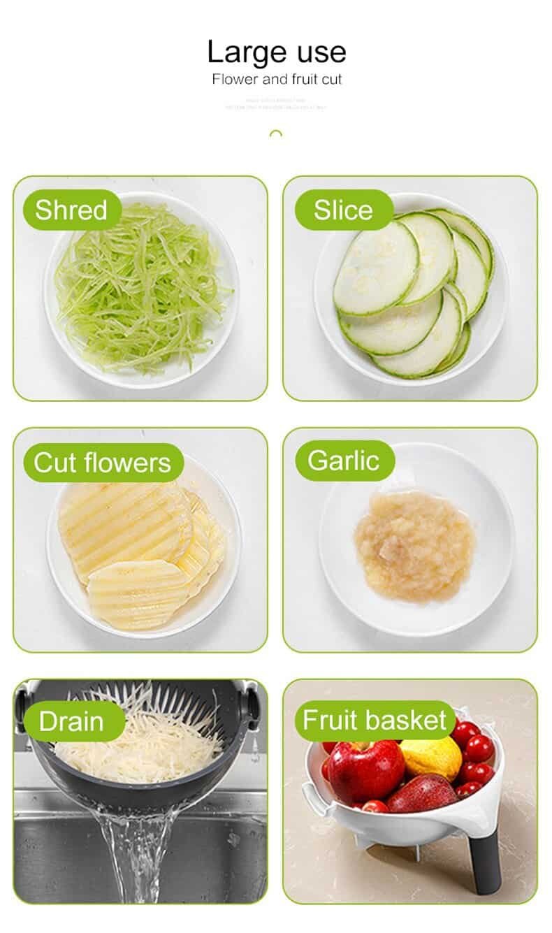 The magic vegetable slicer has a unique drainage function that allows you to clean vegetables directly through the drainage system after cutting. Omit the cumbersome cleaning process to make your cleaning easier.