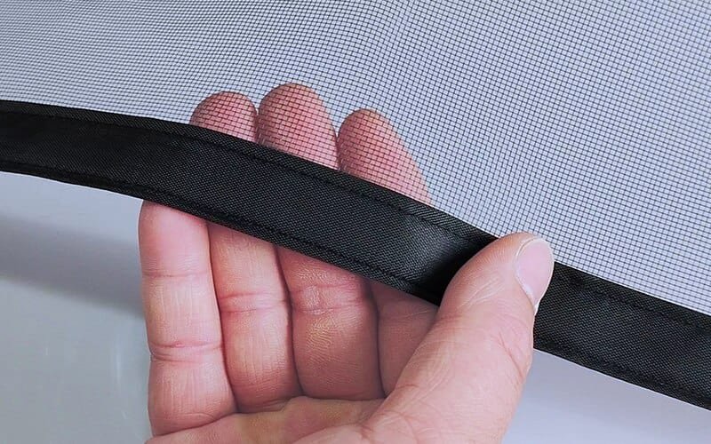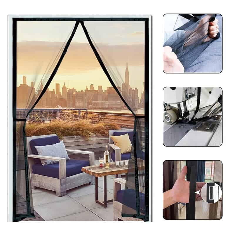 Magnetic Mosquito Screen Door opens easily with just a nudge of a head or hand. The screen door’s middle seam is sewn with powerful magnets that allow it to close seamlessly behind you without any hassle.