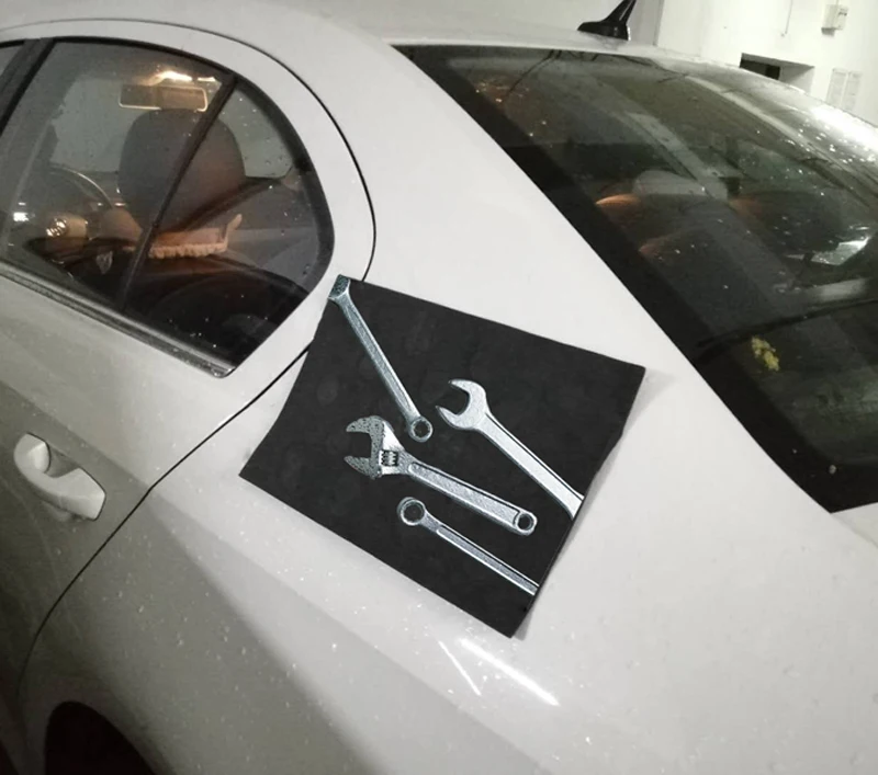 It’s a magnetic pad that you can attach to anything metallic and it’ll hold and cling onto your tools while you work in the garage, under a car hood, and more.
