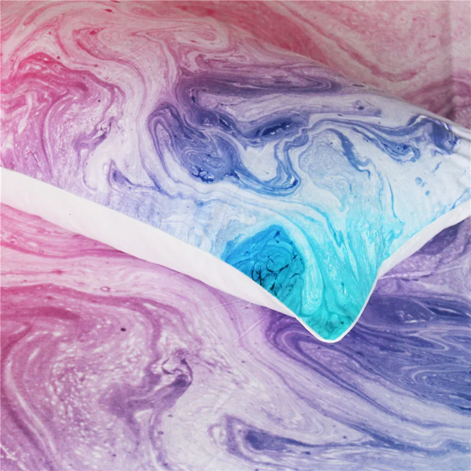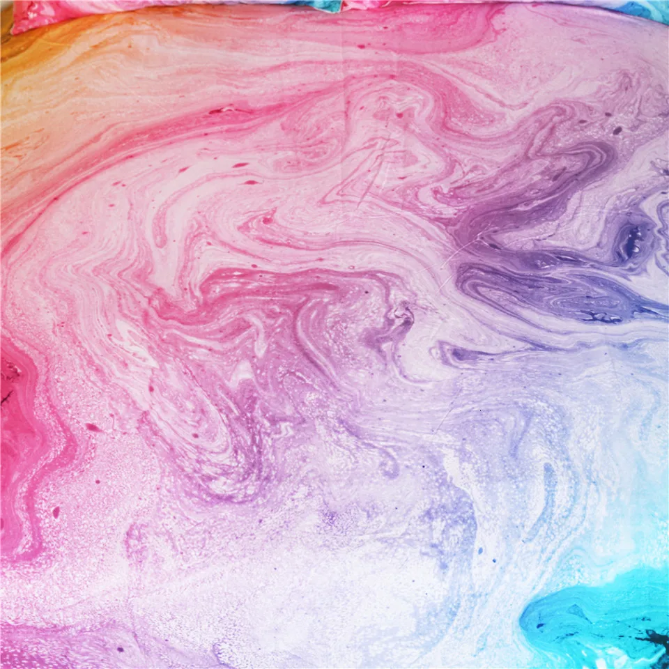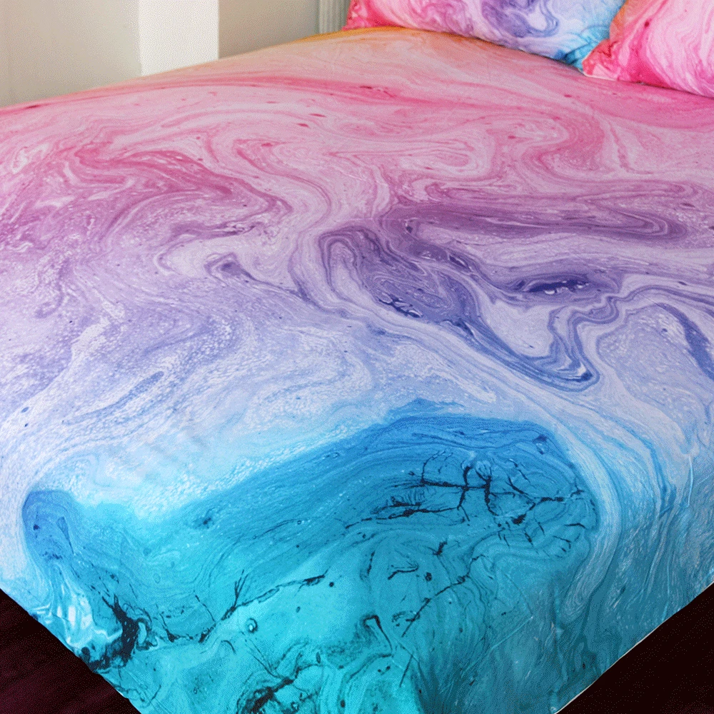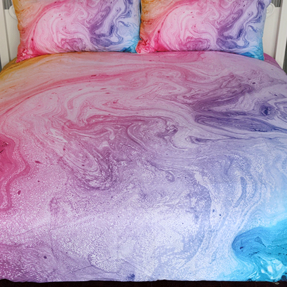 COLORFUL MARBLE PATTERN – An abstract multicolored marble texture creates this eye-catching girly bedding set. Can’t get any more awesome than that.