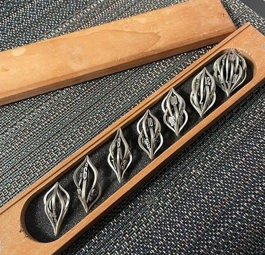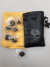 Our Metal Dagger Dice Sets were forged in the depths of the Underdark by old dwarfs. Each 7 piece dice collection includes a D20, D12, D10, D8, D6, D4, and D00, as well as a dice bag.