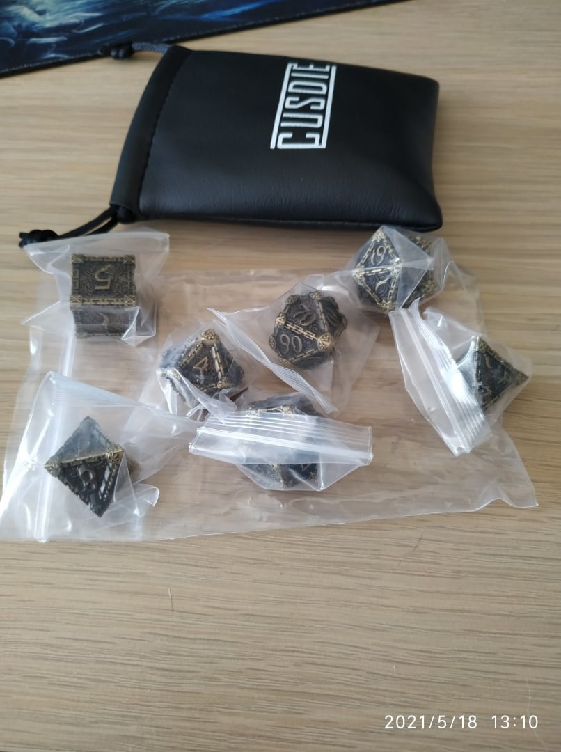 the delivery took a few extra days and started to worry, the have a nice weight to them and feels nice to hold. I didn't realize how tiny they are, but that's on me. I don't like how the numbers seem to be emboss on each face, they are not perpendicular to each side but instead they point in almost 60 degree angle to either top or bottom of the dice, its Rather noticeable when looking at the painted details, but if you look at the photos of the product on Ali you can see the are no hiding that issue, is just hard to see. So there is nothing to complain. good purchase overall