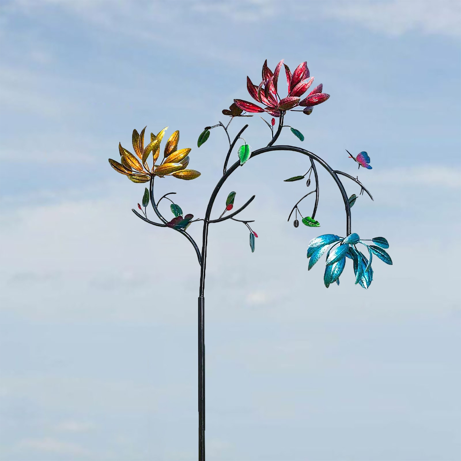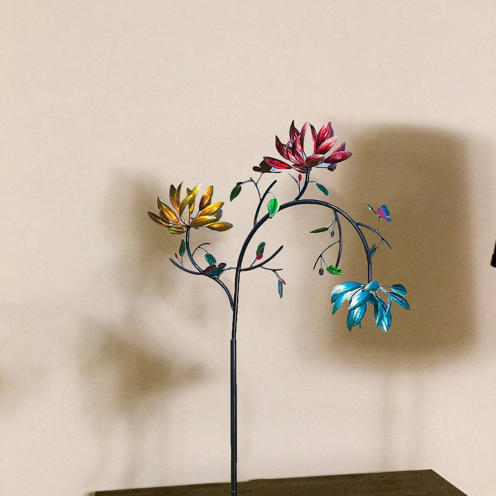 Place this metal flower wind spinner in your garden and watch it come to life. Your yard will be transformed with the mesmerizing motion – it’s impossible not to delight in its vibrant splendor. Highly detailed butterflies in vibrant shades of pink and blue adorn this spinner. The brilliant, highly reflective finish carries over to the detailed pink and yellow flowers and verdant leaves. It brings springtime to your landscape all year long! You’ll be proud to display this work of art in a garden or flower bed. It will help add color any time of year, even after your flowers are gone. What are you looking for? Buy now!