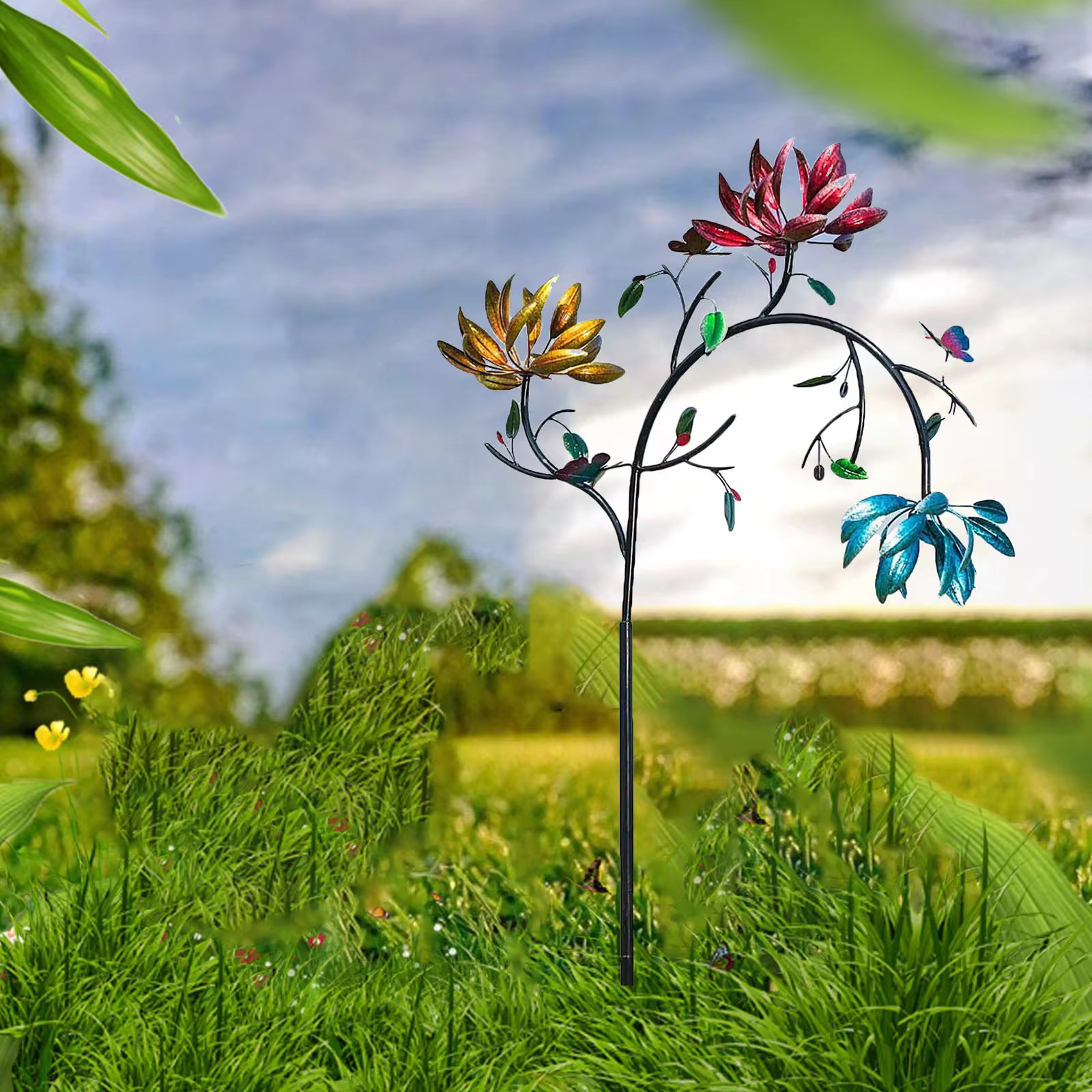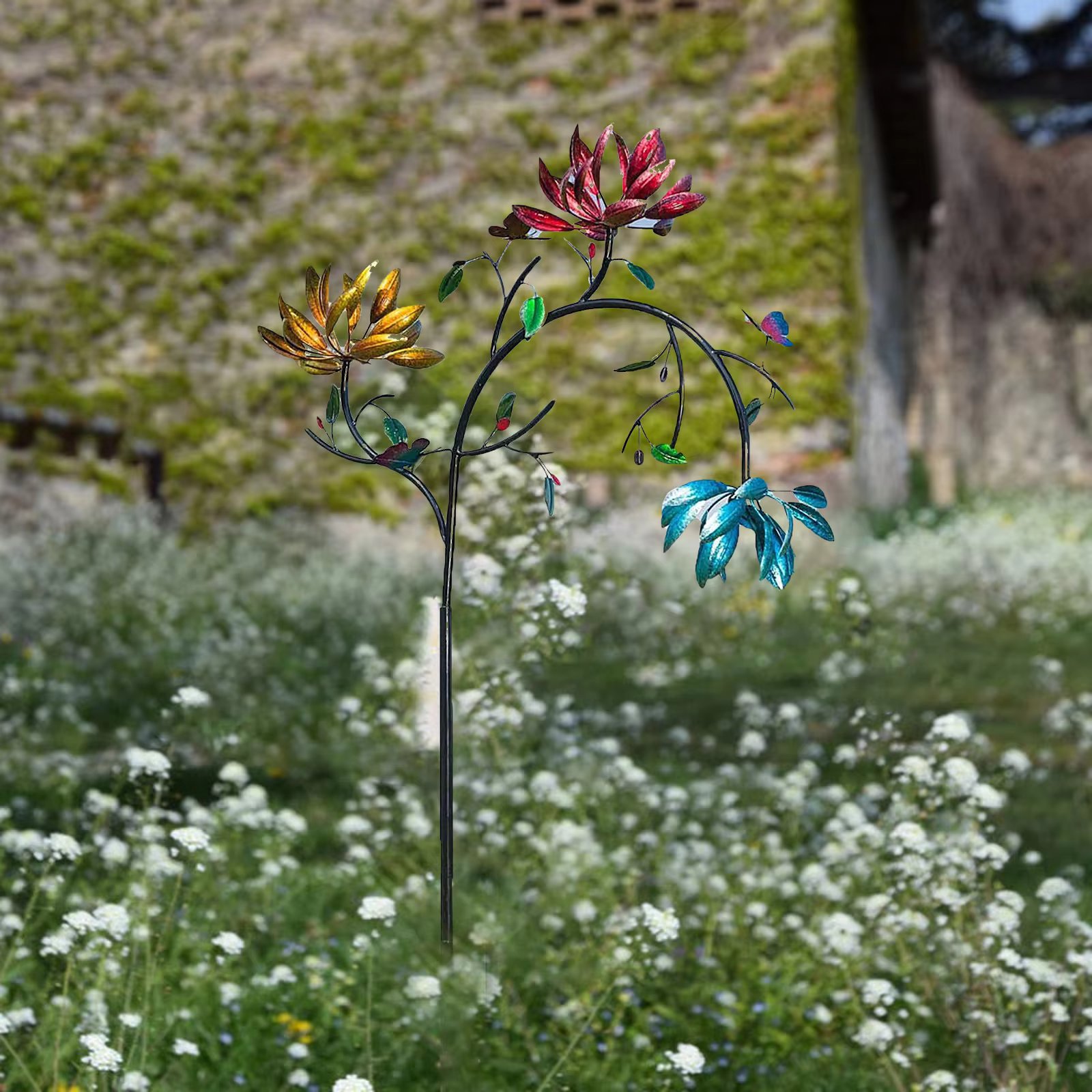 Place this metal flower wind spinner in your garden and watch it come to life. Your yard will be transformed with the mesmerizing motion – it’s impossible not to delight in its vibrant splendor. Highly detailed butterflies in vibrant shades of pink and blue adorn this spinner. The brilliant, highly reflective finish carries over to the detailed pink and yellow flowers and verdant leaves. It brings springtime to your landscape all year long! You’ll be proud to display this work of art in a garden or flower bed. It will help add color any time of year, even after your flowers are gone. What are you looking for? Buy now!