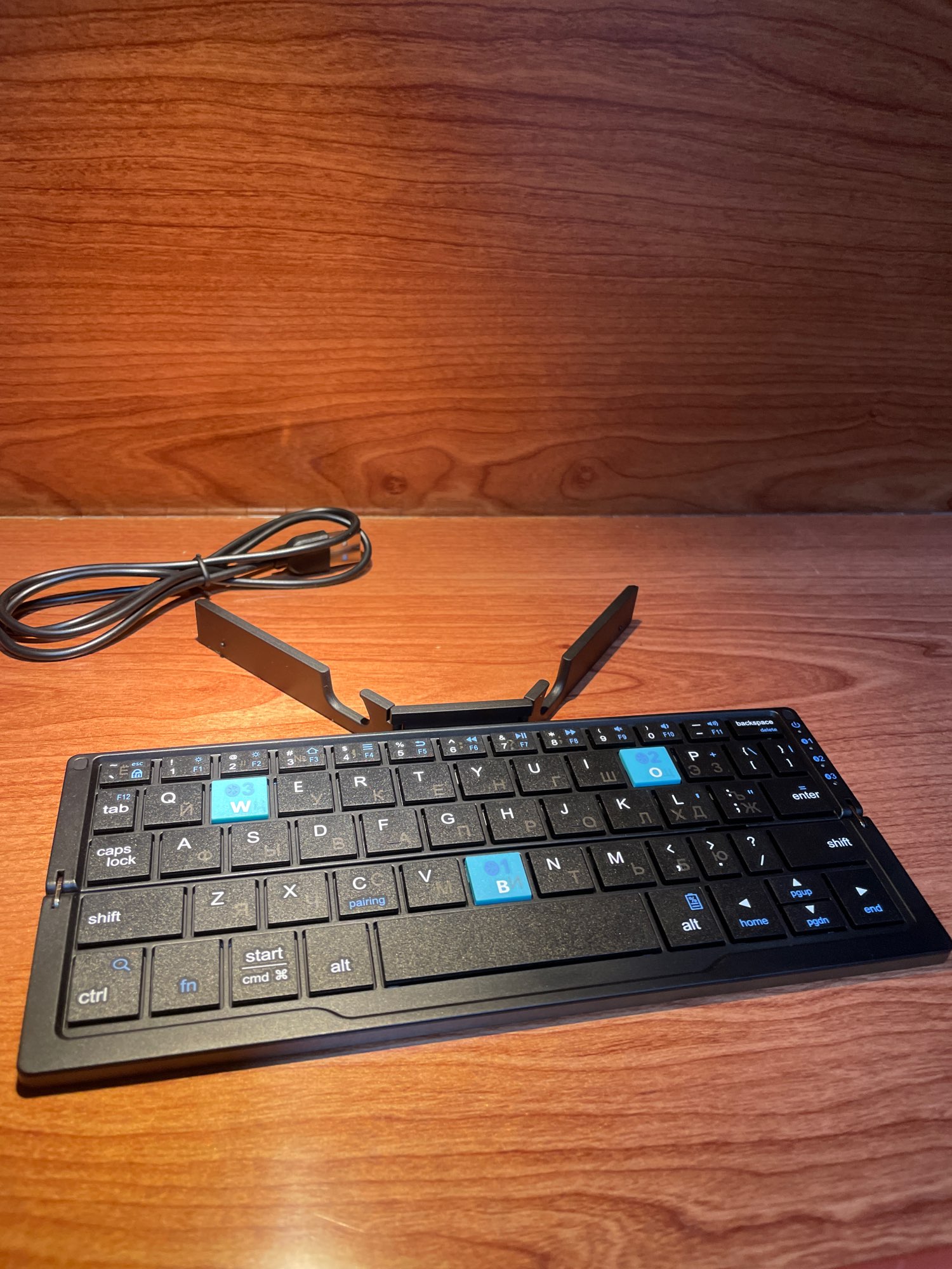 1. Wireless Mini foldable Bluetooth keyboard with Hidden stands to hold and prop up your device, can use your tablets and smart phones at an ideal viewing angle.