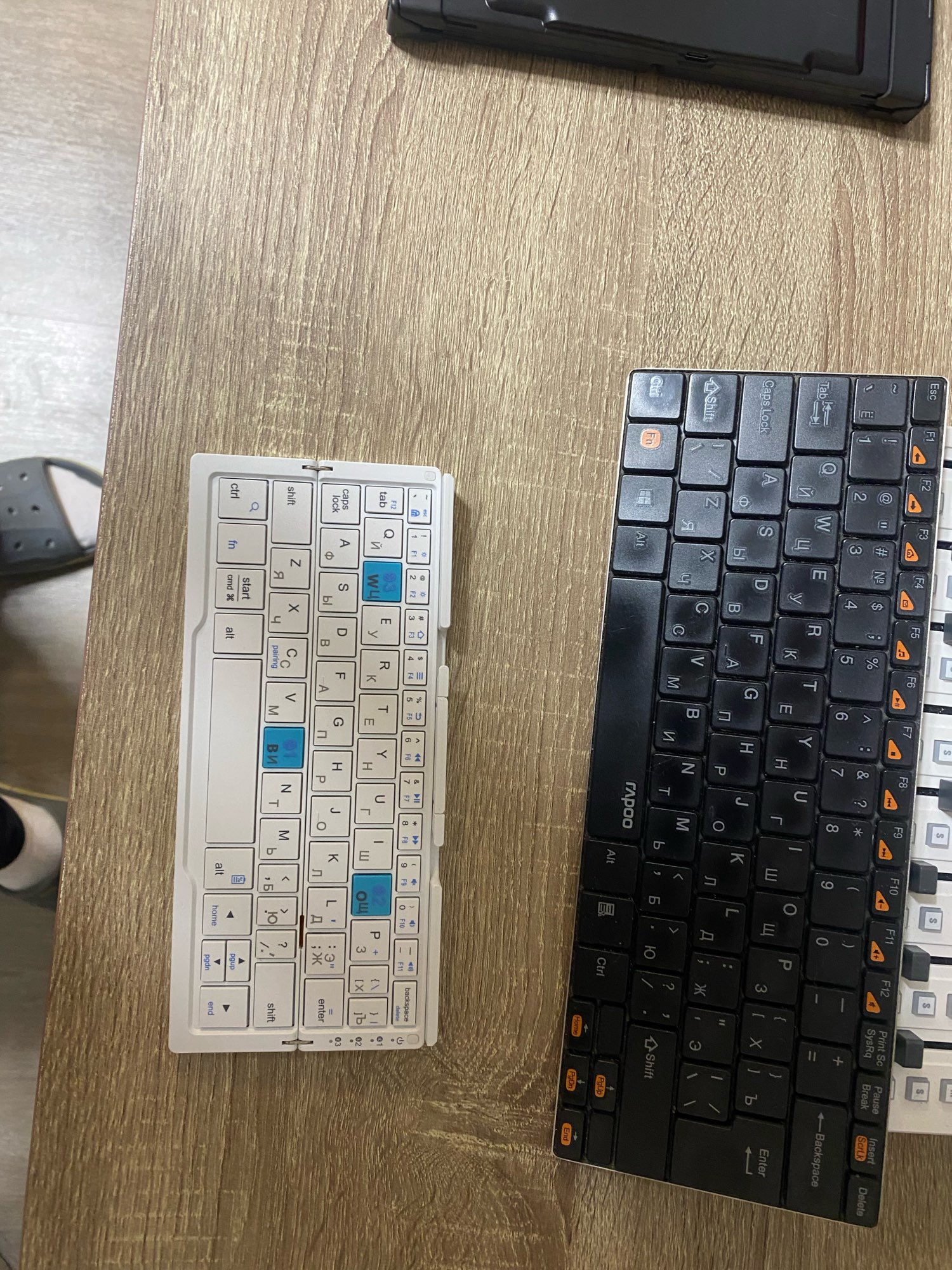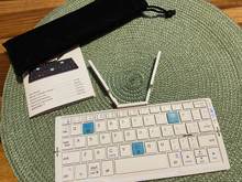 Very handy and perfectly working! Just a caveat: the manual is 1. almost incomprehensible in all languages 2. incorrect in one decisive point: to pair the keyboard you must first press Fn+B (Bluetooth 1) and then FN+C (pairing). To find out the battery charge, the combination is Fn+Alt. The cloth case is more useful than you might imagine, because the fragile flat cable connecting the two sections of the keyboard is exposed.