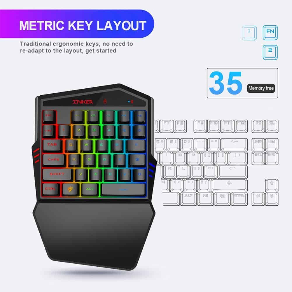 Do you find it difficult to play games on your phone because the screen is too small? Let’s use our Mobile Gaming Keyboard And Mouse. This product includes a computer mouse and s 35 keys one-handed keyboard with a portable design, that you can carry with you everywhere at any time, great for one-hand control. The integrated palm rest and specially positioned spacebar and keys are designed to comfort for when the gaming session goes long, it can reduce fatigue. With a mechanical shaft design, the service life of the buttons can be increased about 60 million times, and the performance is more powerful. Especially, the unique cracking design combining with 7 colors glaring LED multiple colors are glowing at once, highlights the atmosphere of gaming. It’s easy and quick to use, no need to install extra drivers or software. Buy right now!