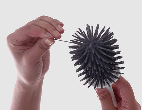When you’re done scrubbing, the quick-drying holder (choose between wall-mounted or floor-standing) allows the water to evaporate at the top and the bottom, which means no dirty water and build-up of mold.