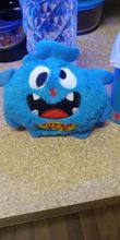 It’s easy to set up the Monster Plush Giggle Ball. Simply unfasten the Velcro, unscrew the battery cover with the included screwdriver, and insert the included AAA batteries. The toy will automatically turn on whenever it is shaken or thrown, and the automatic sleep function will turn it off after inactivity to save battery life.