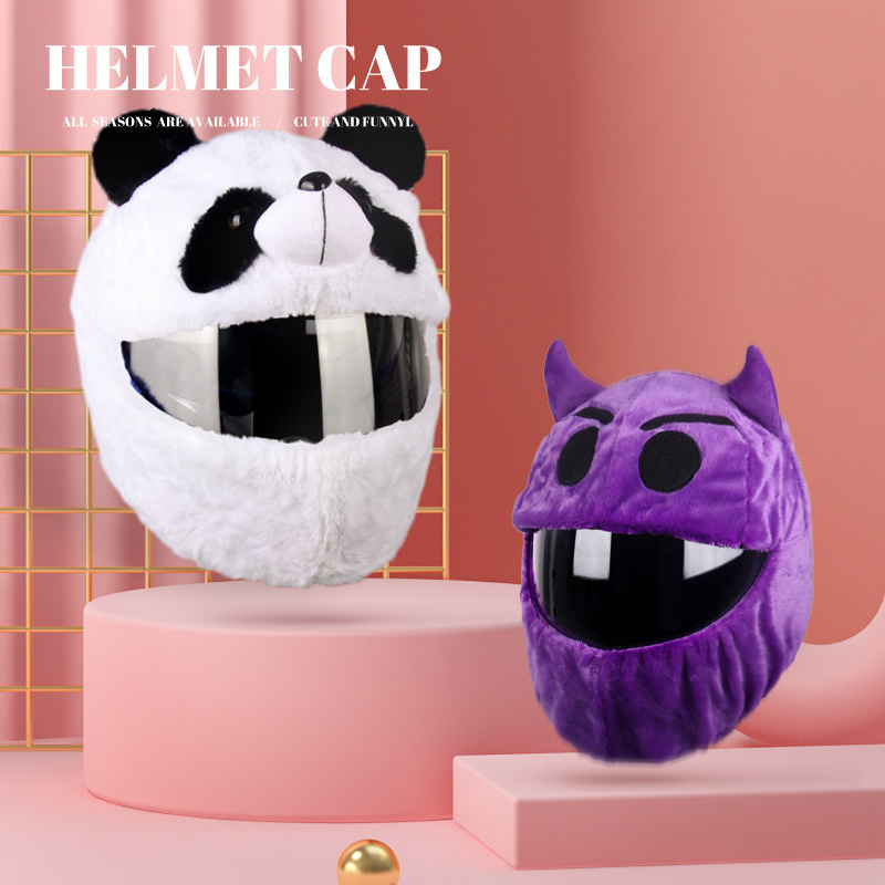 Caps helmet perfectly. Recommended it from behind and then forward so gets better. Fabric not bad, washable and very soft. Looks like a real panda