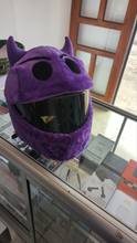 These motorcycle helmet covers are made from real wild monster fur. No, not really – its actually stretchy nylonish fur material with a big bit of elastic around the bottom to hold them firmly to the helmet.