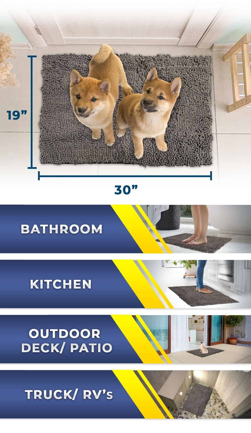 KEEPS FLOORS CLEAN: The muddy mat is designed to soak up liquids and moisture, as well as trap dirt, dander, and other debris to help protect and keep your floors clean from pet-related messes and accidents MULTIPURPOSE: The rug’s collection of highly absorbent, cuddly soft microfiber chenille