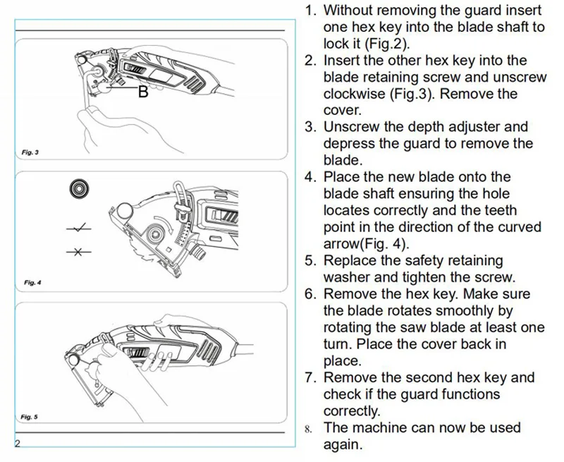 – Only turn on the saw when the blade is facing away from you and anybody else nearby