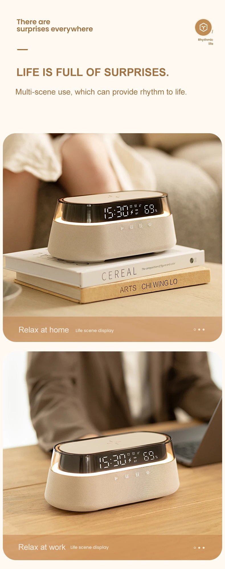 1. **Bedroom**: Place it on your nightstand for a reliable wake-up call. Set different alarms for weekdays and weekends to match your schedule.
