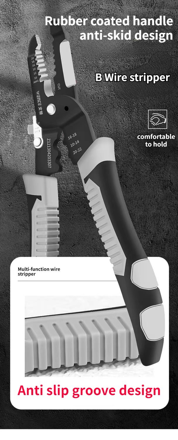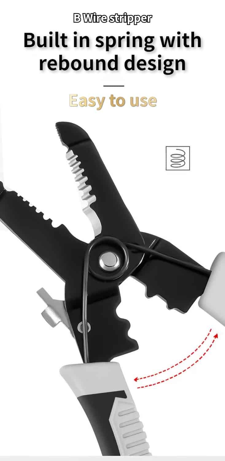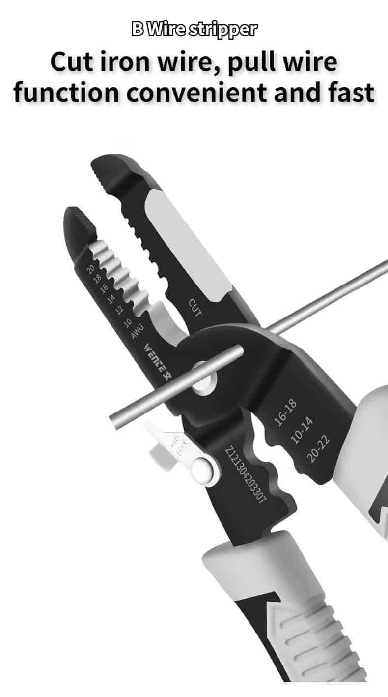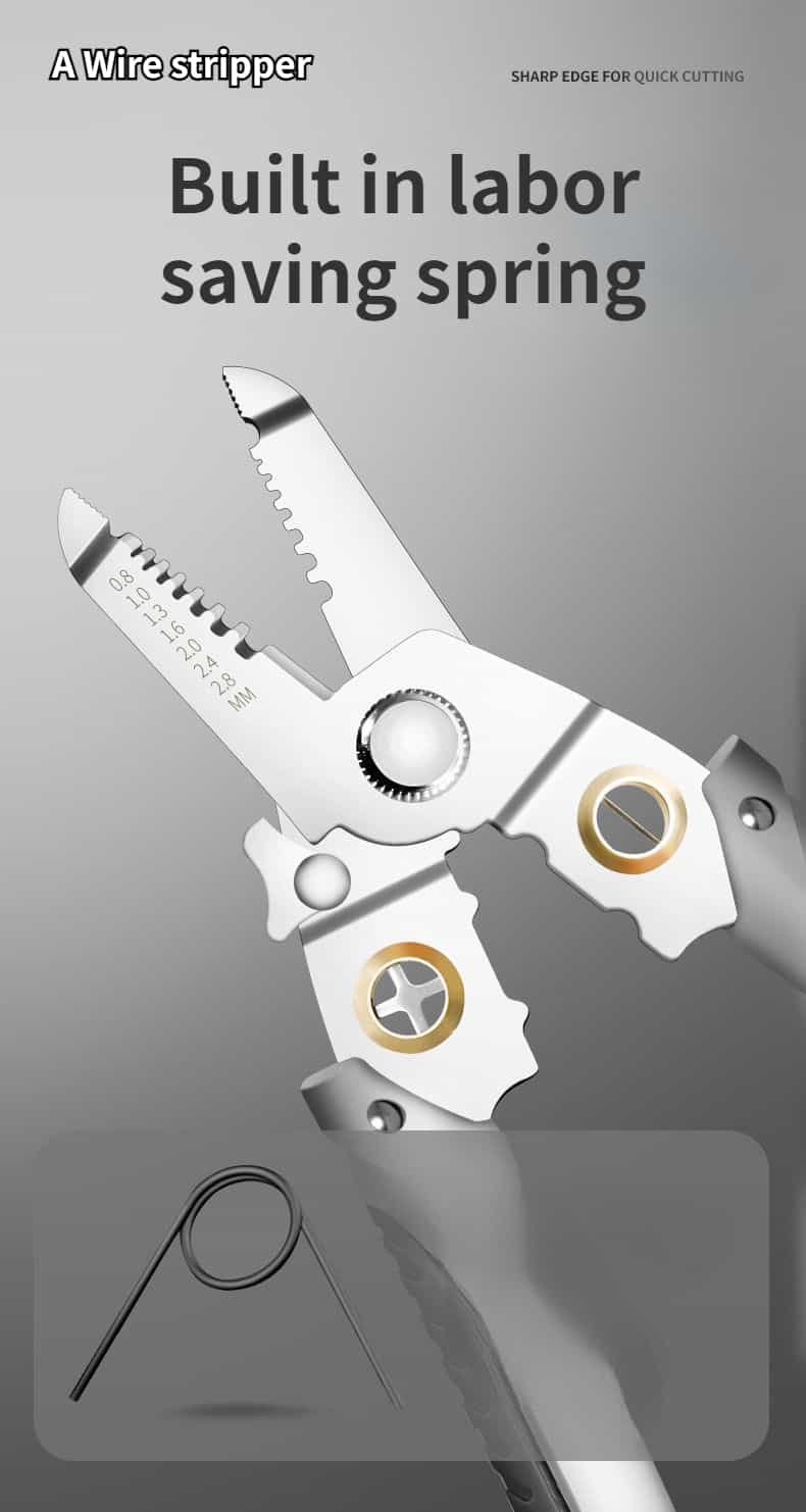 Multifunction Wire Plier can not only split the wire, but also cut the wire, disconnect the steel wire, cut the wire, clamp, peel and wind the wire. Powerful and complete functions, one hand in place, eliminating the operation of frequent tool replacement, and conveniently and quickly improving the work efficiency.