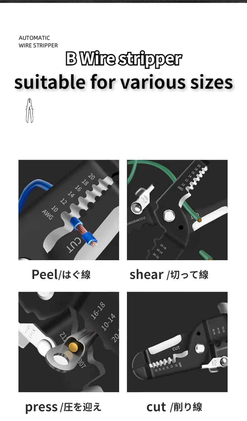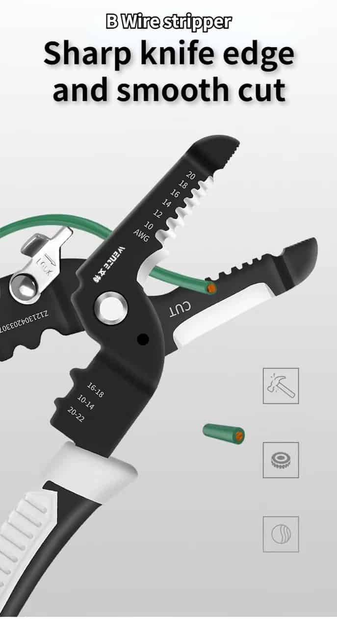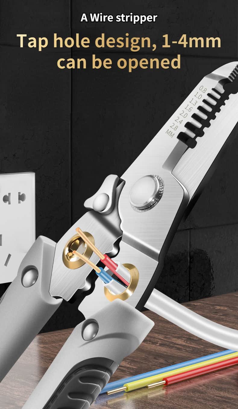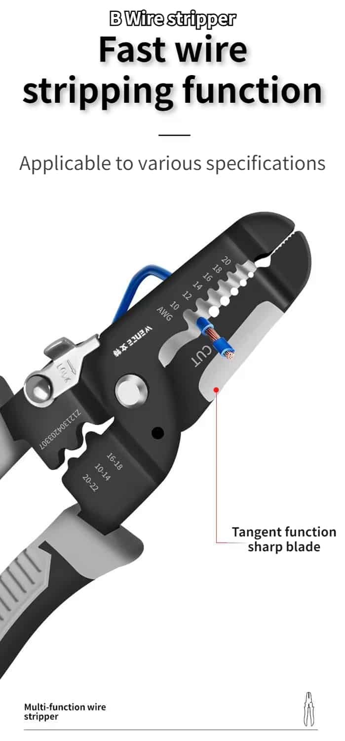 There is an incision in the hand, which is easy to handle. The blade is sharp and can cut quickly. The central edge is made in strict accordance with the size of copper aluminum core, and the wire core will not be damaged during cutting. Durable