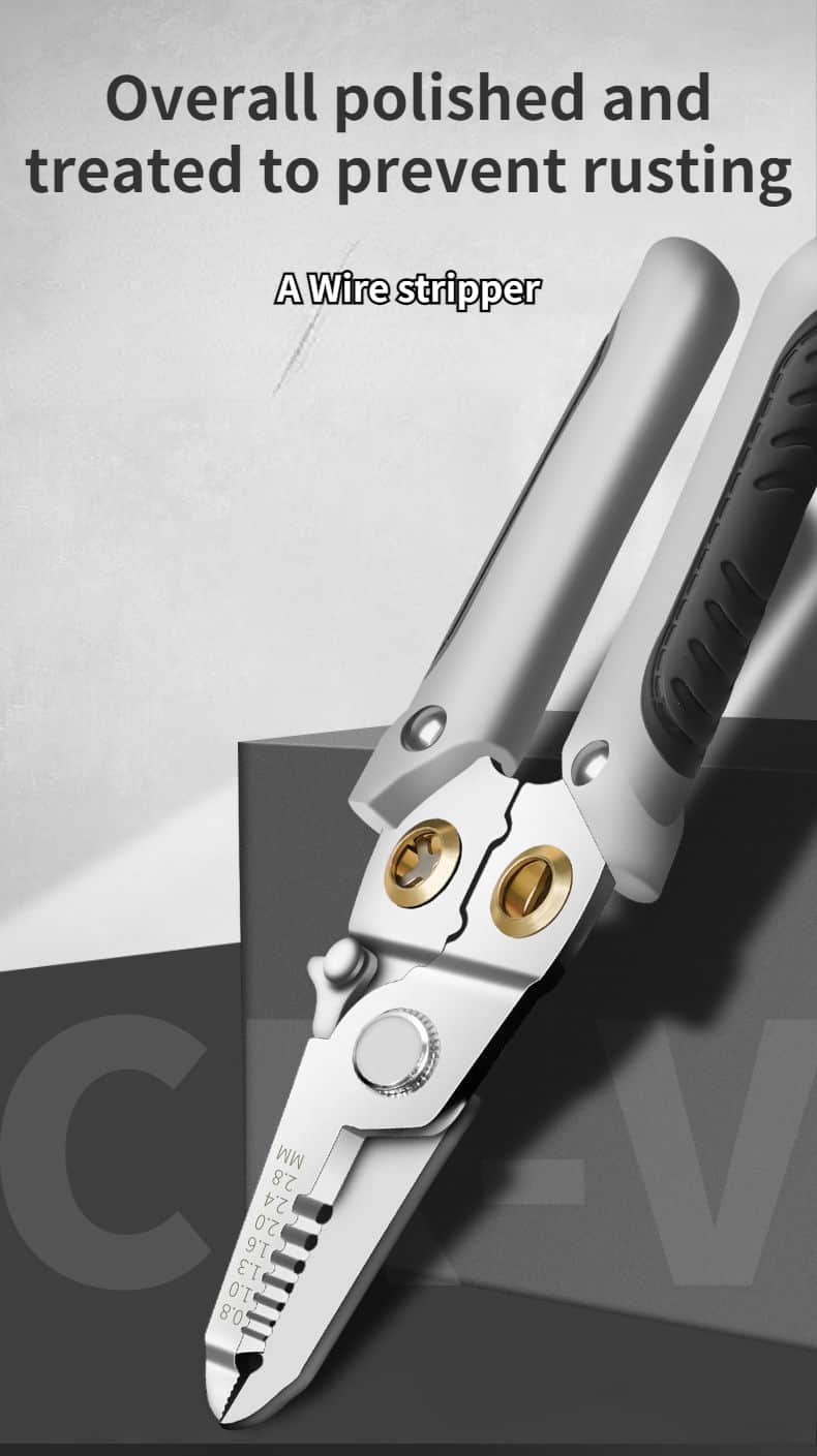 Pliers and scissors are made of high-quality alloy steel with fine workmanship, high wear resistance and long service life. The handle is made of TPR material, which is anti-skid and wear-resistant.