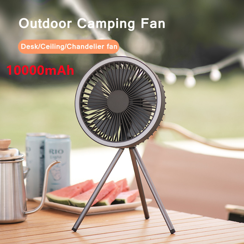 Going on a camping trip with your family this weekend? Our Multifunctional tripod fan is a must-have thing you need on this trip! This fan has a built-in 10000 mAh polymer battery, which can last 8-27 hours depending on the wind speed. In addition, it has a circle of LED lights with 3 brightness settings. With 360-degree rotation manually, you could feel the airflow from the desired direction. It can be adjusted up and down manually to realize a multi-angle air supply, not disturb your sleep, work, and study, and enjoy the cool as you like. Moreover, it has a hidden hook, which can be hung on your tent or car. The Multifunctional tripod fan is suitable for hiking, camping, motor home, travel, home, and office. Get it now!