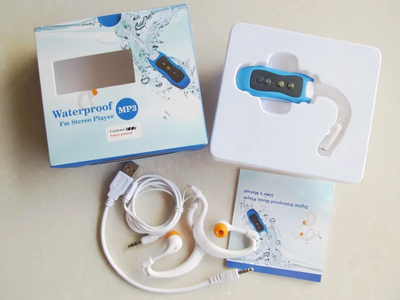 High durability aluminum shell with clip, its convenient for you to carry. Along with waterproof earphone comes four soft silicone ear cushions. Built-in rechargeable li-battery, it can work up to 8 hours when fully charged. Compliant with international IPX8 water resistance standards.