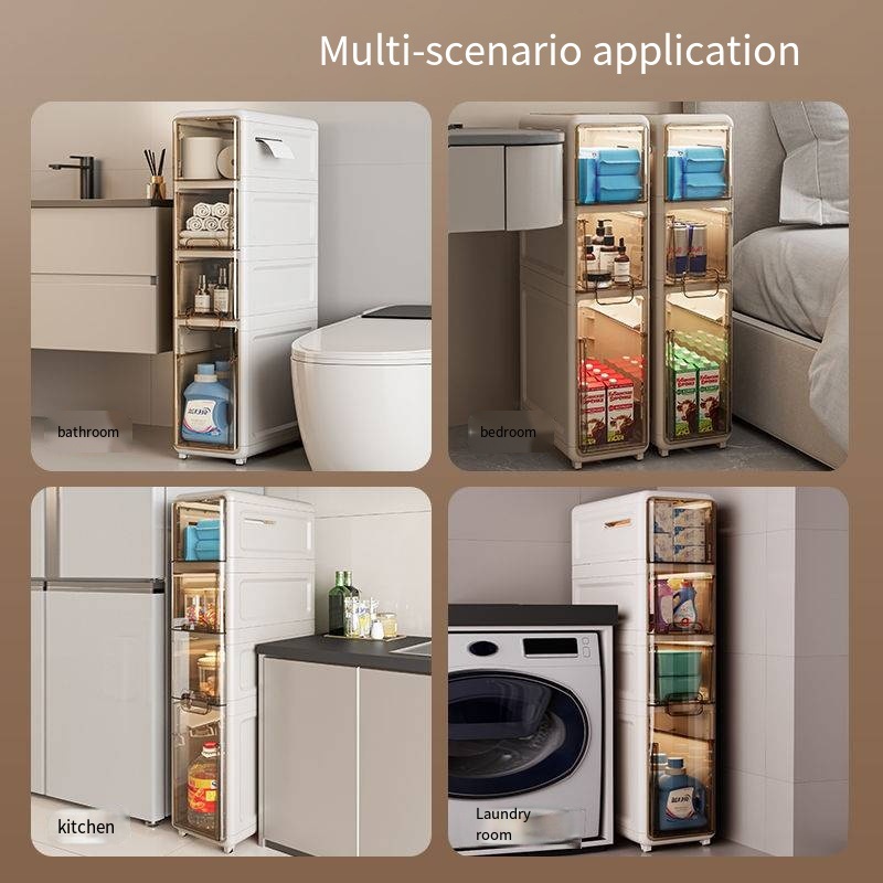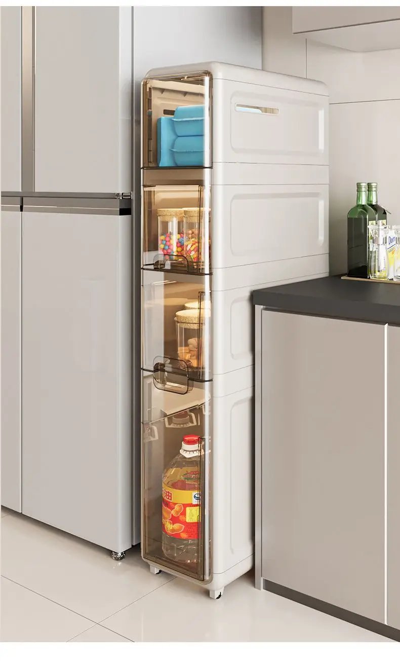 2. Kitchen Organization: In the kitchen, narrow storage cabinets can be used to store spices, canned goods, utensils, and small appliances. Place a cabinet between the refrigerator and the wall or next to the stove for easy access to cooking essentials.