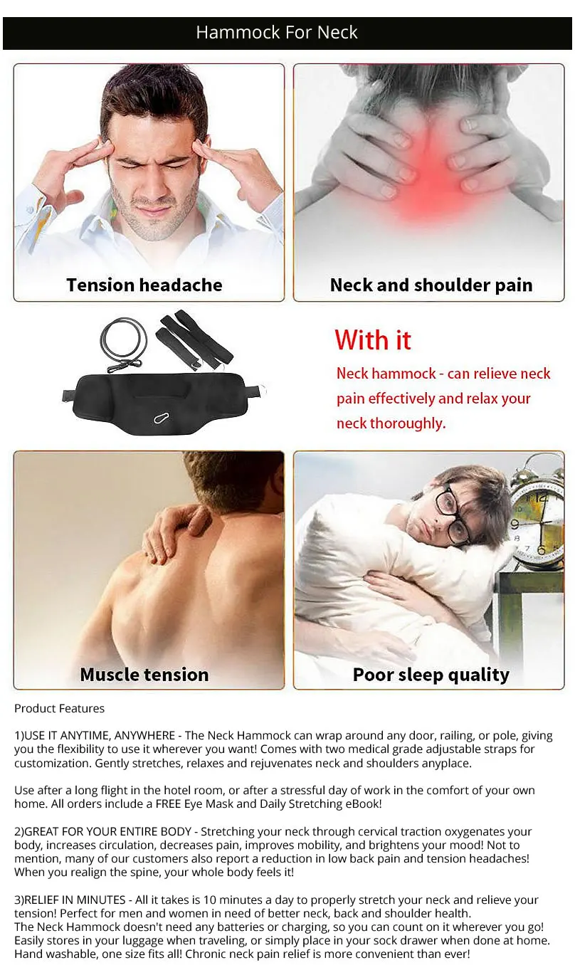 NECK HAMMOCK – A unique device to help you quickly relieve neck and shoulder pain in less than 10 minutes for better blood circulation and enhanced sleep quality.