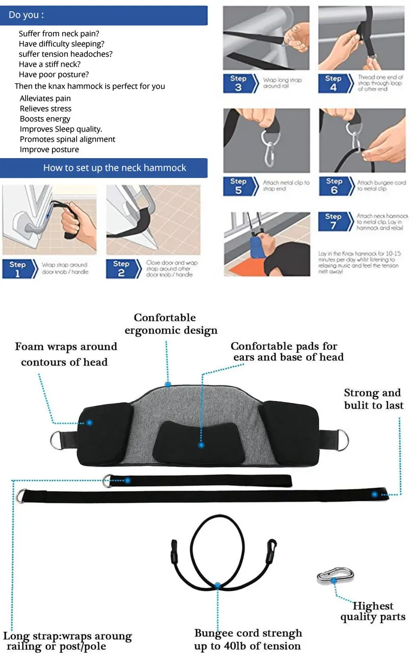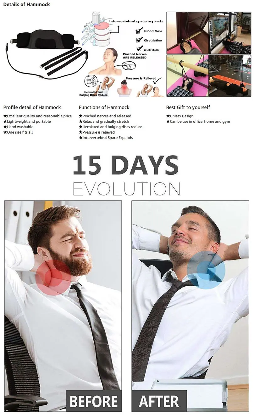 ★ In our age of technology, neck pain is a common problem. The Neck Hammock will help you change this situation by gradually stretching and increasing the intervertebral space, resulting in Instant Pain Relief.