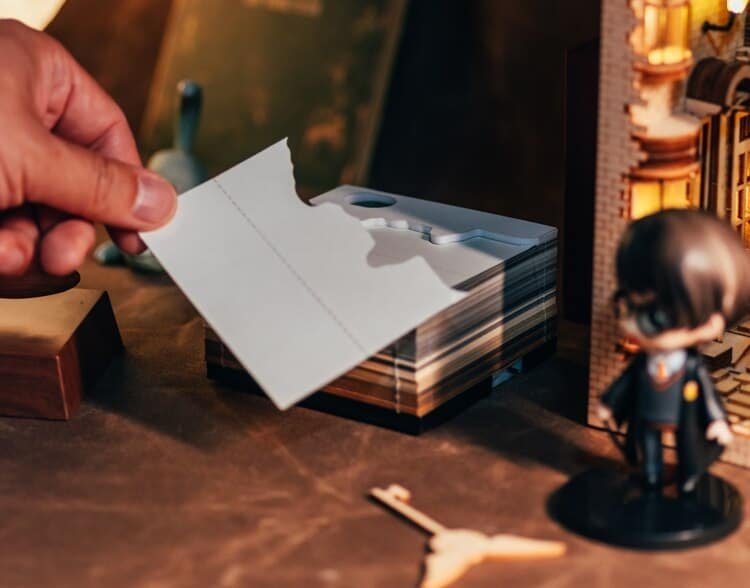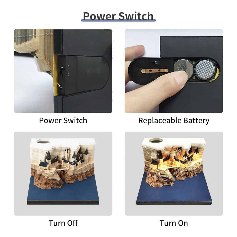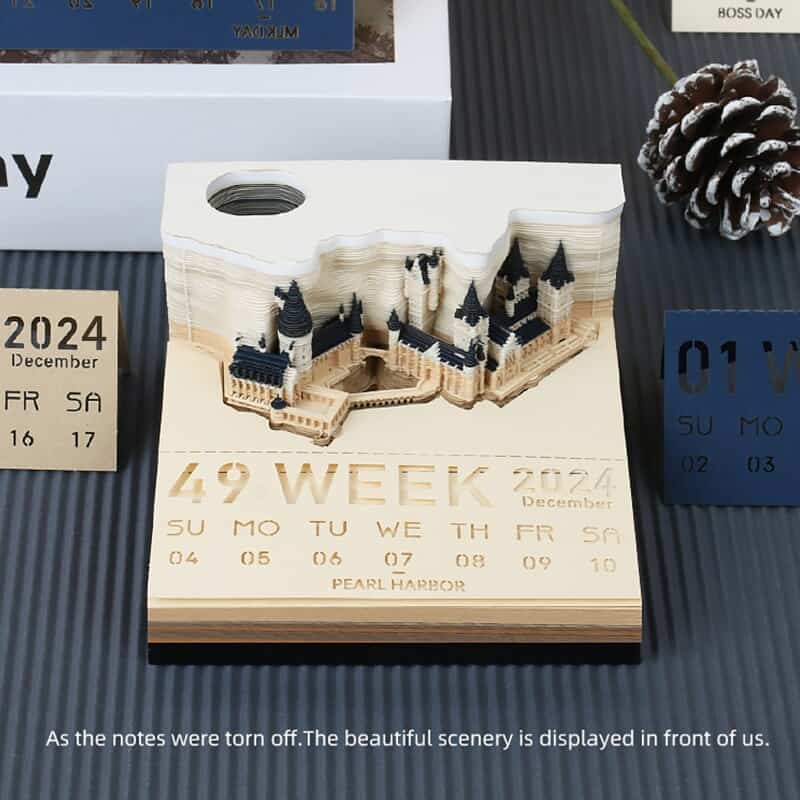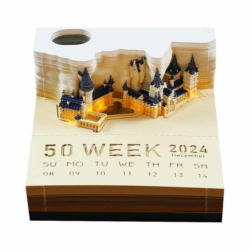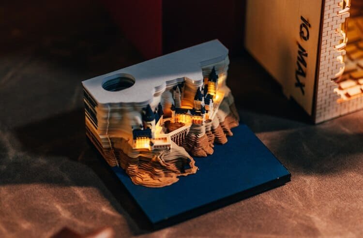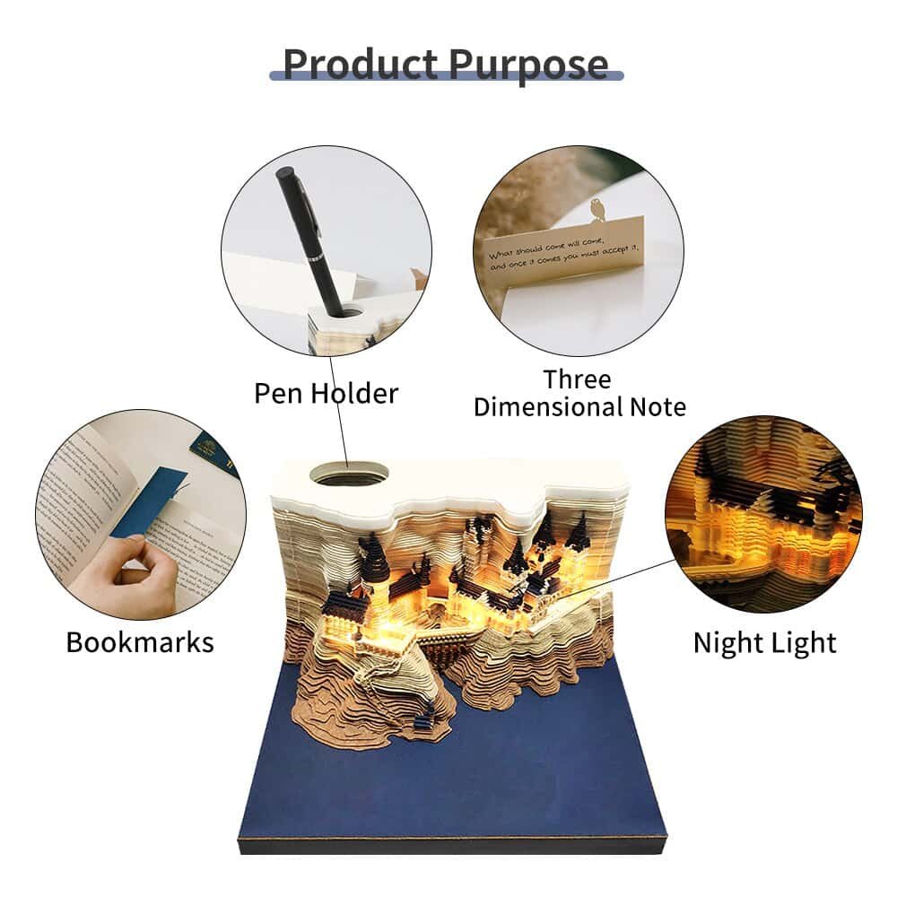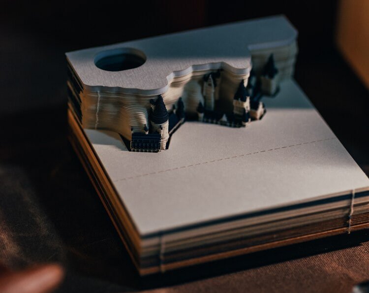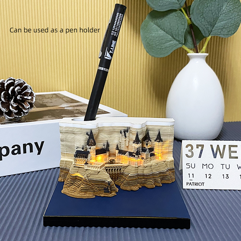 Clever design begins with a thick paper pad. In different colors, some web pages have pop-up designs – such as Hary’s broomstick. Each piece of paper has strategic perforations around the outline of the three-dimensional castle. Put a note on your desk and write a memo to your colleagues or remind yourself. With the use and removal of bed sheets, the spire began to appear. The whole castle was finally exposed in the shade of trees.