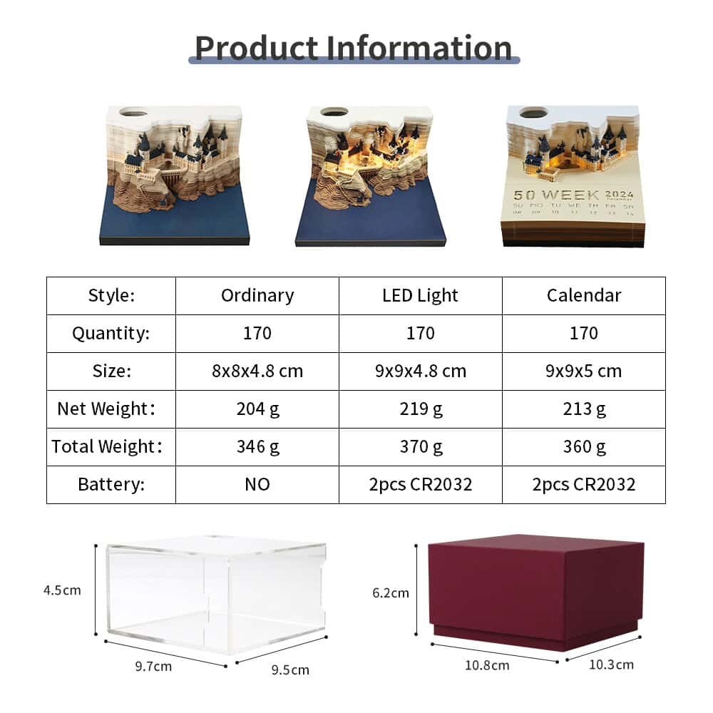 Are you looking for a fun and creative way to take notes, doodle, or sketch? Then you’ll love the Castle 3D Omoshiroi Notepad! This amazing product lets you build your own castle out of paper, while also providing you with plenty of pages to write or draw on. The Castle 3D Memo Pad comes with 100 sheets of high-quality paper, each with a perforated outline of a castle piece. You can easily tear out the pieces and assemble them into a 3D model of a castle, complete with towers, walls, and windows. The Castle 3D Memo Pad is perfect for kids and adults alike, whether you want to use it for school, work, or play. You can decorate your castle with stickers, markers, or glitter, or leave it plain for a minimalist look. The Castle 3D Memo Pad is also a great gift idea for anyone who loves castles, fantasy, or origami. Order yours today and unleash your imagination with the Castle 3D Memo Pad!