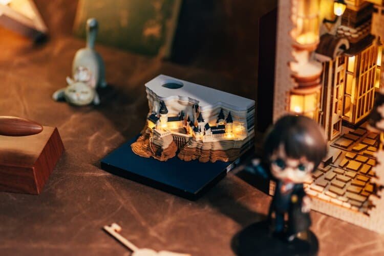 Fans know that Howarts castle is a dazzling destroyed building. Muggles or wizards, now everyone can use this to stare at this magnificent castle. Memorandum book triad of Japanese companies in omoshiroi block. As each page is used and torn apart, Howarts Castle begins to appear along the spine of the mat. When all the pages eventually disappear, copies of the magic school can be displayed on tables or shelves.